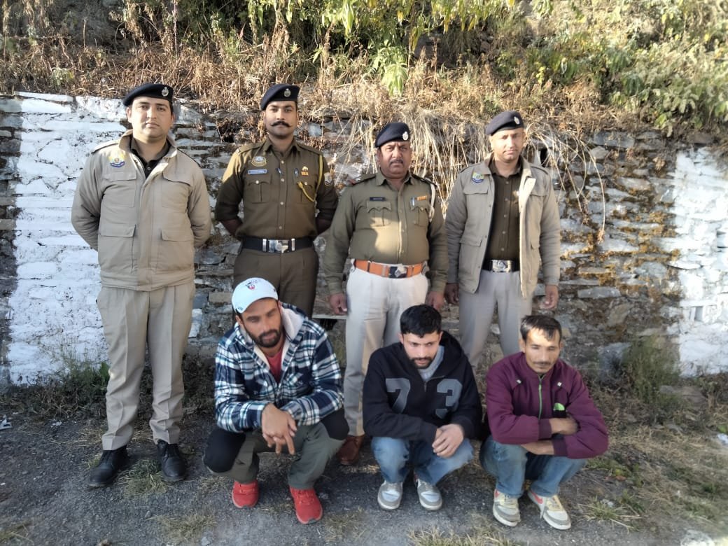 कोटखाई पुलिस के हाथ लगी चिट्टे की बड़ी खेप |जिला शिमला में नशे को बेचने और करने वालो की संख्या बढ़ती जा रही है | वहीं लगातार पुलिस नशे व्यापारियों के खिलाफ कारवाही कर रही है और अब बड़े व्यापारी हाथ लग रहे है | जानकारी देते हुए डीएसपी ठियोग सिद्धार्थ शर्मा ने बताया कि उपमंडल कोटखाई में 107 ग्राम चिट्टा बरामद किया गया। जिसमे 3 और लोगों की चिट्टे के धागे में उछाल केस में उकसाया गया। इसी तरह के 3 हैशटैग डायलॉग्स को केस FIR नंबर 82/23 में गिरफ्तार किया गया है और 2 दिन की पुलिस रिमांड ली गई है। जिसमे पंकज शर्मा पुत्र लेफ्टिनेंट राज कुमार विला. मेल-1 पीओ कलबोग तहसील कोटखाई जिला शिमला हिमाचल प्रदेश उम्र 31 वर्ष, इंदर बहादुर पुत्र दल बहादुर निवासी ग्राम। कोलपुर, ओडीए नं. 06, थाना नेपाल गंज, आंचल राप्ती जिला बांके नेपाल ए/पी सी/ओ सुंदर लाल श्याम विला कवानो पी/ओ बटाडी तहसील कुमारसैन हिमाचल प्रदेश उम्र 35 वर्ष, अक्षय चौहान पुत्र गोपाल चौहान ग्राम कोठी डाकघर बागी तहसील कोटखाई जिला शिमला हिमाचल प्रदेश आयु 27 वर्ष शामिल है | मामले में पुलिस द्वारा आगे की कार्यवाही की जा रही है |