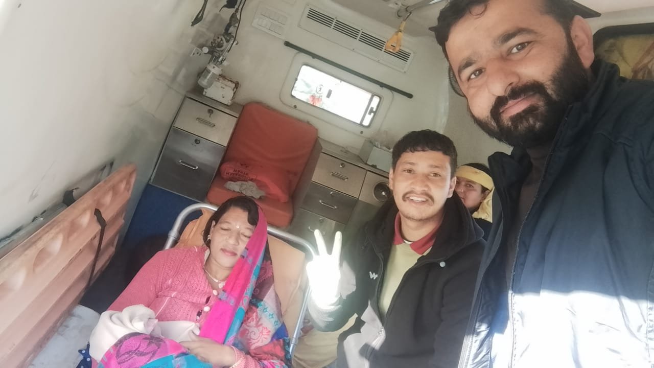 जिला सिरमौर के राजगढ़ में 108 एम्बुलेंस में फिर एक बच्चे की किलकारी गूंजी | 108 एम्बुलेंस में तैनात इएमटी शुभम तोमर ने जानकारी देते हुए बताया कि आज सुबह एक गर्भवती महिला जिसका नाम समिता पत्नी शेरु बड़ू साहिब निवासी को बड़ू साहिब से राजगढ़ अस्पताल ले जाया जा रहा था | लेकिन चौकी मोड़ के समीप महिला को प्रसव पीड़ा बहुत तेज हो गई थी, जिसे सहन करना बहुत ही मुश्किल था | फिर 108 एम्बुलेंस में तैनात इएमटी शुभम तोमर ने निर्णय लिया कि महिला का प्रसव एम्बुलेंस में ही करवाया जाए | जिसके बाद इएमटी शुभम तोमर ने चौकी मोड़ पर 108 एम्बुलेंस में ही महिला का सुरक्षित प्रसव करवा दिया | इस दौरान महिला व बच्चा दोनों स्वस्थ है | शुभम तोमर ने बताया कि रास्ते में महिला की तबियत बहुत खराब हो चुकी थी, इस दौरान उन्होंने यह निर्णय लिया और समिता का सफलतापूर्वक प्रसव करने में सफलता हासिल की | इस दौरान उनके साथ पायलट राजेश ठाकुर भी मौजूद थे | उसके बाद महिला और बच्चे को सिविल अस्पताल राजगढ़ पहुंचाया गया |