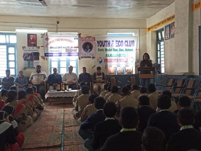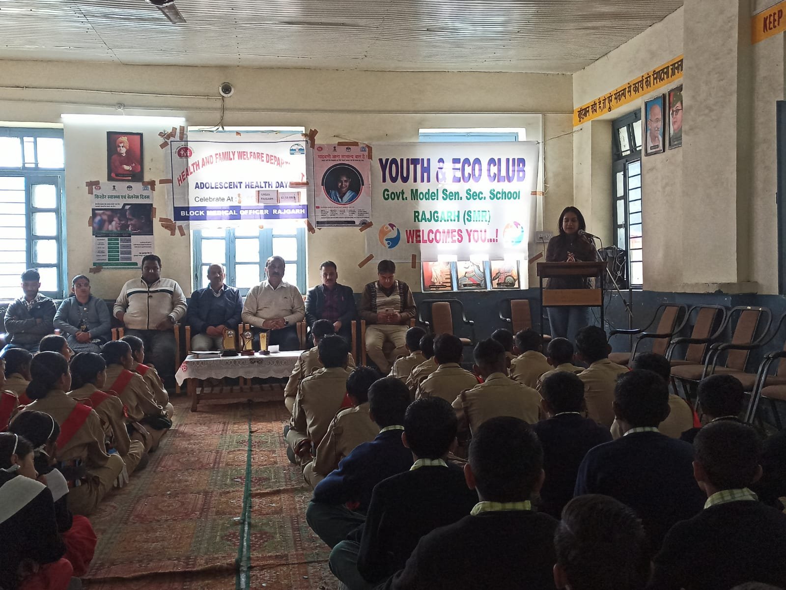 राजकीय आदर्श वरिष्ठ माध्यमिक पाठशाला राजगढ़ में जागरूकता शिविर का आयोजन किया गया | इस शिविर में स्कूल के यूथ क्लब के 60 बच्चों तथा NCC फर्स्ट ईयर व सेकंड ईयर के 85 बच्चों ने भाग लिया | इस जागरूकता शिविर में सिविल हॉस्पिटल राजगढ़ से डॉक्टर शिवांगी तथा राजेश शर्मा ने बच्चों को साफ सफाई व एडोलोसेट एज में होने वाले बदलाव के बारे में विशेष रूप से जानकारी दी तथा बच्चों को सभी प्रकार की नशे से दूर रहने के लिए प्रेरित किया, क्योंकि आज समाज में नशा एक ऐसी बीमारी बन गई है | जिसकी गिरफ्त में हमारे युवा बहुत अधिक संख्या में आ रहे हैं | जिससे उनका पूरा जीवन खराब हो रहा है | इस अवसर पर हॉस्पिटल से आई टीम ने बच्चों के एचबी टेस्ट भी किए | अंत में स्कूल के प्रधानाचार्य पंकज कुमार व प्रभारी यूथ क्लब प्रवीण कुमार ने हॉस्पिटल से आने वाले डॉक्टर व अन्य सदस्यों का धन्यवाद किया |