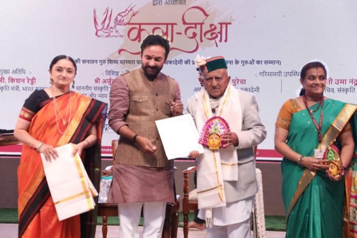 पद्मश्री विद्यानंद सरैक एवं गोपाल हाब्बी ने प्रेस को संयुक्त बयान में बताया कि गत दिवस संगीत नाटक अकादमी नई दिल्ली द्वारा आयोजित कला दीक्षा सम्मान समारोह में देश भर के विभिन्न विधाओं से जुड़े कला गुरुओं के सम्मान हेतु सम्मान समारोह का आयोजन किया गया। कार्यक्रम के मुख्य अतिथि केंद्रीय संस्कृति एवं पर्यटन मंत्री जी के रेड्डी रहे। उसके अलावा संस्कृति मंत्रालय की संयुक्त सचिव उमा नंदूरी और संगीत नाटक अकादमी की अध्यक्ष डॉ संध्या पुरेचा भी मौजूद रहीं। देश के विभिन्न राज्यों में विलुप्त होती जा रही लोक विधाओं को एक पीढ़ी से दूसरी पीढ़ी तक पहुंचाने के लिए एवं सनातन धर्म की गुरु शिष्य परंपरा को प्रोत्साहन देने के लिए संगीत नाटक अकादमी द्वारा प्रशिक्षण कार्यक्रम चलाया गया है।
