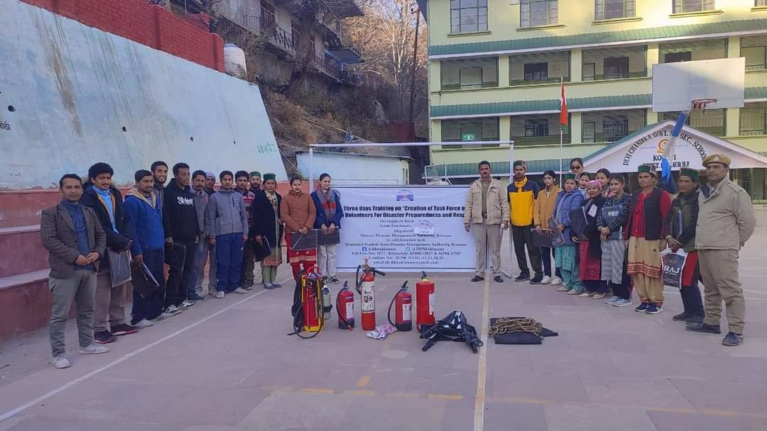 जिला आपदा प्रबंधन प्राधिकरण किन्नौर द्वारा किन्नौर जिला की कल्पा खंड के 24 पंचायत में युवा स्वयंसेवकों को आपदा से निपटने की दी जा रही ट्रेनिंग का आज कोठी ग्राम पंचायत में समापन हुआ । बता दे कि जिला आपदा प्रबंधन प्राधिकरण किन्नौर द्वारा 4 दिसंबर 2023 से इस ट्रेनिंग की शुरुआत की गई तथा आज कोठी गांव में इस ट्रेनिंग का समापन हुआ है । इस ट्रेनिंग में लगभग 300 युवा स्वयंसेवकों ने भाग लिया है | बता दे कि इस ट्रेनिंग में प्रथम दिन युवा स्वयंसेवकों को प्राथमिक उपचार के बारे में डॉक्टर नेहा नेगी ने विस्तृत तथा क्रियात्मक रूप से जानकारियां दी | वही दूसरे दिन होमगार्ड के प्लाटून कमांडर बुद्ध राज ने खोज एवं बचाव कार्य के बारे में युवा स्वयंसेवकों को ट्रेनिंग दी गई । ट्रेनिंग के अंतिम तथा तीसरे दिन अग्निशमन केंद्र रिकांगपिओ के कर्मचारियों ने युवा स्वयंसेवकों को अग्नि सुरक्षा के बारे में बताया व इस्तेमाल किए जाने वाले उपकरणों के बारे में विस्तृत तथा क्रियात्मक रूप से जानकारियां दी । आज कोठी ग्राम पंचायत में अग्नि सुरक्षा की ट्रेनिंग अग्निशमन केंद्र के लीडिंग फायरमैन सुंदरलाल और जिला आपदा मित्र इंचार्ज जगदीश नेगी ने युवा स्वयंसेवकों को दी | इस ट्रेनिंग में कोठी, पांगी और तेलगी पंचायत के युवा स्वयंसेवकों ने भाग लिया जिला आपदा प्रबंधन प्राधिकरण किन्नौर द्वारा कल्पा, पूह और निचार ब्लॉक में लगभग 850 युवा स्वयंसेवकों को ट्रेनिंग दी गई है और किन्नौर जिला में 100 आपदा मित्र है जो एडवांस कोर्स कर चुके हैं, जोकि भविष्य में आपदा से निपटने के लिए तैयार हो गए हैं । इस ट्रेनिंग में आपदा प्रबंधन प्राधिकरण किन्नौर के नरेन्द्र,शंकर नेगी और जगदीश नेगी पूरे ट्रेनिंग में मौजूद रहे ।