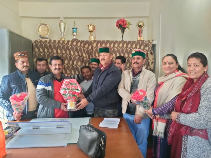 राजकीय प्रारंभिक शिक्षा खण्ड राजगढ़ में अनिल भारद्वाज ने खण्ड प्रारंभिक शिक्षा अधिकारी के रूप में कार्यभार ग्रहण किया। इस मौके पर PT.A के राज्य उपाध्यक्ष सुखदर्शन ठाकुर, महिला विम राज्य उपाध्यक्ष आरती चौहन, पूनम चौहान, अजय ठाकुर, संदीप शर्मा बी०आर०सी०सी० रमेश वर्मा, सुरेन्द्र मेहता, दीपक ठाकुर, संदीप ठाकुर देशराज सोमदत अधीक्षक, शिवराम वरिष्ठ सहायक, मनोज शर्मा तथा कार्यालय का समस्त स्टाफ उपस्थित रहा। सभी अध्यापकों ने अनिल भारद्वाज को खण्ड प्रारंभिक शिक्षा अधिकारी बनने पर मुबारकबाद देकर शुभकामनाएं दी तथा अनिल भारद्वाज ने सबका धन्यवाद किया। इस अवसर पर प्रैस को संबोधित करते हुए राज्य उपाध्यक्ष सुखदर्शन ठाकुर ने जिला सिरमौर के सभी प्रमोट हुए प्रारंभिक शिक्षा अधिकारियों को बधाई दी तथा हिमाचल प्रदेश सरकार, विभाग तथा जिल्ला प्राथमिक शिक्षक संघ को प्रोमोशन निकलवाने के लिए धन्यवाद किया। साथ ही उप निदेशक महोदय जिला सिरमौर से आग्रह किया कि जल्दी ही केन्द्र मुख्य शिक्षकों की पदोन्नति की जाए ताकि, जिले में खाली पड़े CHT के पदों को भरा जाए और जल्दी ही बैच वाइज़ JBT की भर्ती की लिस्ट निकलनाएं ताकि जिला के दुर्गम क्षेत्रों में खाली पड़े JBT के पदों को भरा जाएं जिससे छोटे बच्चों को लाभ मिले।