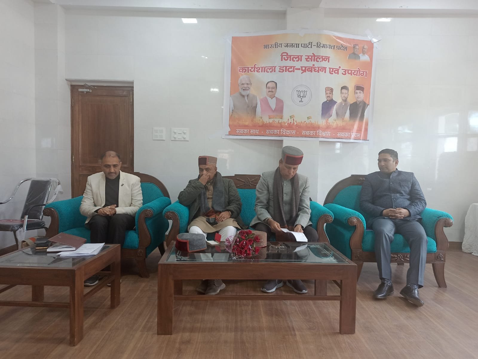 भाजपा डेटा प्रबंधन एवं प्रयोग की एक विशेष बैठक का आयोजन सोलन में किया गया। बैठक की जानकारी देते हुए जिला भाजपा प्रैस सहसचिव मुकेश गुप्ता ने बताया कि इस बैठक की अध्यक्षता जिला अध्यक्ष आशुतोष वैद्य ने की। बैठक में कार्यकर्ताओं को पूर्व मंत्री राजीव सहजल, प्रदेश उपाध्यक्ष पुरुषोत्तम गुलेरिया एवं भाजपा प्रदेश सह मीडिया प्रभारी करण नंदा का मार्गदर्शन प्राप्त हुआ। पूर्व मंत्री राजीव सहगल ने कहा कि भाजपा ने 2024 के आम चुनावों के लिए तैयारी शुरू कर दी है, भाजपा जल्द ही अपना बूथ स्तर पर काम को और मजबूती से शुरू करने वाली है। इसको लेकर आज एक विशेष बैठक का आयोजन हुआ जिसमें अनेकों प्रकार की चर्चा और परिचर्चा हुई। उन्होंने कहा कि भाजपा 2024 में एक बार फिर राष्ट्र में सरकार बनाने के लिए प्रस्थ है। जिस प्रकार से प्रधानमंत्री नरेंद्र मोदी ने देश का नेतृत्व किया है उससे हमें पूर्ण विश्वास है कि 2024 में एक बार फिर पूर्ण बहुमत की सरकार केंद्र में बनेगी। पुरुषोत्तम गुलेरिया ने कहा कि जल्द ही भाजपा बूथ स्तर पर अनेकों कार्यक्रमों का आयोजन किया जाएगा और भाजपा की शक्ति बूथ स्तर पर है। बूथ पर अनेकों योजनाओं और कार्यक्रमों को लेकर इस बैठक में चर्चा की गई और जल्द ही भाजपा बूथ स्तर पर एक मजबूत कार्यशैली तैयार करेगी। कसौली मंडल अध्यक्ष कपूर सिंह वर्मा, महामंत्री विनोद मारवाह, सोलन मंडल अध्यक्ष मदन सिंह ठाकुर, महामंत्री भरत साहनी, नंदलाल, अर्की मंडल अध्यक्ष देवेंद्र उपाध्याय, महामंत्री यशपाल कश्यप, दून मंडल अध्यक्ष बलबीर सिंह ठाकुर, महामंत्री कश्मीर सिंह, नालागढ़ मंडल अध्यक्ष हेमराज गौतम, महामंत्री मनोहर लाल व सोलन जिला व पांचो मंडलो के डेटा प्रबंधन व उपयोग टोलीयो के सभी सदस्य मौजुद रहे।