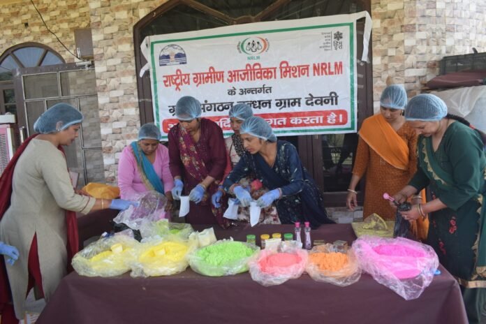 जिला में 86 स्वयं सहायता समूहों ने बनाए होली के लिए आर्गेनिक रंग अकेला बंधन स्वयं सहायता समूह नाहन, 50 किलो हर्बल गुलाल बेचेगा। इस बार सिरमौर जिला में महिलाओं को आर्थिक रूप से आत्मनिर्भर बनाने की दिशा में जिला ग्रामीण विकास अभिकरण, राष्ट्रीय ग्रामीण आजीविका मिशन (एन.आर.एल.एम.) के माध्यम से बेहतरीन कार्य कर रहा है। इस मिशन के तहत जिला में स्वयं सहायता समूहों का गठन कर महिलाओं को विभिन्न स्वरोजगार अपना कर उनकी आर्थिकी को मजबूत करने के लिए प्रेरित किया जा रहा है। वर्तमान में जिला में एन.आर.एल.एम. के तहत करीब 3946 स्वयं सहायता समूह कार्य कर रहे हैं। समूहों की महिलाएं विभिन्न स्वरोजगार जैसे फूड प्रोसिंग में आचार, पापड़, जूस, स्क्वेश, मुरब्बा के अलावा जूट बैग, पाईन फर्नीचर आदि पर प्रमुखता से कार्य कर रहे हैं। पिछले एक दो साल से कुछ समूहों ने होली के लिए हर्बल रंगों को बनाने को भी अपने स्वरोजगार संसाधन में शामिल कर लिया है।वर्तमान में जिला में करीब 86 स्वयं सहायता समूह (एस.एच.जी.) होली के लिए प्राकृतिक अथवा हर्बल गुलाल बनाने का कार्य कर रहे हैं। पांवटा साहिब खंड के लक्ष्य, दिशा, अनुभव, अनन्या, शिवालय, शिव शंकर और भूरेश्वर स्वयं सहायता समूह तथा नाहन का बंधन, पच्छाद का शी हाट, राजगढ़ का प्रगति, शिलाई का गुग्गा महाराज और राधा कृष्ण सहित कुल 12 विलेज आर्गेनाइजेशन, 86 स्वयं सहायता समूहों को होली का रंग तैयार कर आर्थिक रूप से आत्मनिर्भर बनने लिए अभिप्रेरित कर रहे हैं।समूहों द्वारा तैयार इन रंगों को डीआरडीए के खंड स्तर पर निर्मित हिमिरा शॉप में विक्रय के लिए रखा जा रहा है। कुछ समूह अपने स्तर पर रंगों को तैयार कर बाजार में विक्रय कर रहे हैं। पिछले वर्ष करीब 30 स्वयं सहायता समूहांे ने होली के प्राकृतिक रंग बनाए थे और लोगों ने इन्हें खूब पसंद किया। इसी से प्रेरित होकर इस बार भी स्वयं सहायता समूहों ने होली के आर्गेनिक रंगों को तैयार करने का अनुकरणीय कदम उठाया है।नाहन के समीप देवनी पंचायत का बंधन स्वयं सहायता समूह होली के आर्गेनिक रंगों को तैयार करने की दिशा में पिछले दो वर्षों से आगे बढ़ रहा हैॅ। इस समूह ने इस बार होली के लिए पांच रंगों का करीब 50 किलो हर्बल गुलाल रंग तैयार किया है। समूह ने मोगीनंद के मुख्य मार्ग पर स्टाल लगाकर इस रंग का विक्रय करने की तैयारी कर ली है।समूह की प्रधान शिप्रा राय कहती हैं कि इस बार हमारे पास होली पर आर्गेनिक रंगों की एडवांस बुकिंग आ गई है। हमारी पंचायत और आसपास के क्षेंत्रों के लोगों की आर्गेनिक रंगों की काफी डिमांड है। किन्तु इस साल हम केवल 50 किलो रंग ही बना पा रहे हैं। पिछले साल हमने 25 किलो रंग तैयार किया था। लोगों की डिमांड और बढ़ते रूझान को देखते हुए अगले साल की होली के लिए हमार