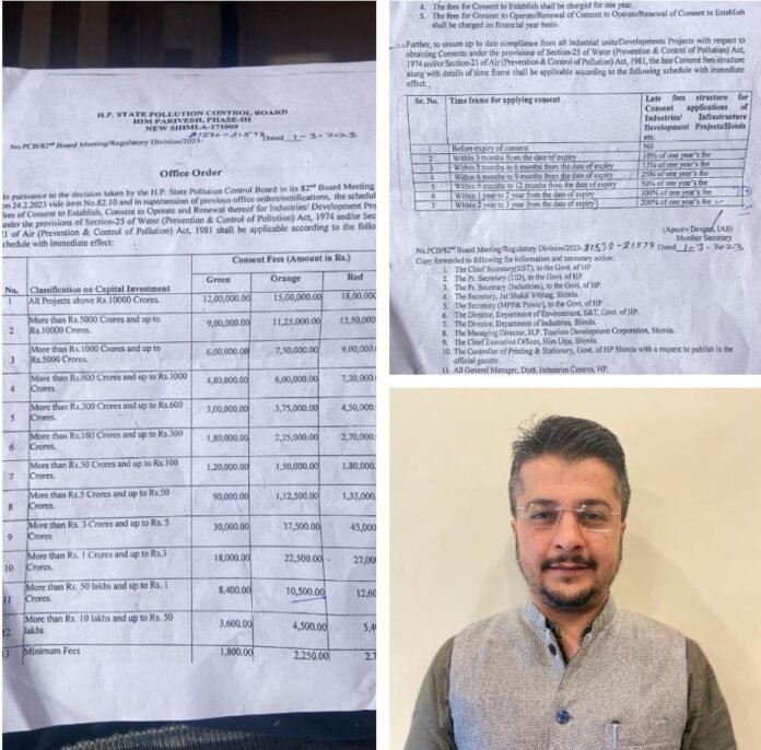 हिमाचल प्रदेश में प्रदूषण नियंत्रण बोर्ड के एक नोटिफिकेशन के विरुद्ध आम आदमी पार्टी ने अपना विरोध जताया है। आम आदमी पार्टी के प्रदेश प्रवक्ता व पर्यटन प्रकोष्ट के प्रदेश उपाध्यक्ष मनीष सरीन ने प्रदूषण नियंत्रण बोर्ड द्वारा जारी 200 गुणा जुर्माना नोटिफिकेशन पर कड़ा संज्ञान लेते हुए सरकार पर तुगलकी फरमान लागू करने का आरोप लगाया है। आप प्रदेश प्रवक्ता व पर्यटन प्रकोष्ट के प्रदेश उपाध्यक्ष सरीन ने बताया कि एक मार्च से राज्य के प्रदूषण नियंत्रण बोर्ड ने एक सर्कुलर जारी किया है। जिसमें उन्होंने होटल और संबंधित उद्योगों से जुड़े लोगों पर 200 गुना जुर्माना वसूलने का आदेश दिया है। उन्होंने बताया कि जो होटल और उद्योग अपनी प्रदूषण की लइसेंस फीस देने में देरी कर रहा है, उनसे 10 फीसदी से लेकर 200 फीसदी तक का जुर्माना वसूला जायेगा। जिसमें 3 सालों की देरी वाले उद्योग से 200 गुना जुर्माना वसूलने के आदेश प्रदूषण नियंत्रण बोर्ड ने पारित किये हैं। उन्होंने कहा कि अगर होटल की फीस 50000 सालाना है तो उसे उसका 200 गुना के हिसाब से एक करोड़ का जुर्माना देना होगा। कोरोनाकाल के समय में यह कहा गया था कि कोई भी लाइसेंस जिसकी अवधि खत्म हो रही है उसे डरने की आवश्यकता नहीं है यह लाइसेंस एक्टिव रहेंगे। लेकिन अब 3 साल की गणना करना कहां तक जायज है। उन्होंने कहा कि इसका मतलब प्रदूषण नियंत्रण बोर्ड कोरोना काल में दी गयी छूट को नजर अंदाज कर रहा है। पर्यटन उद्योग जो कि प्रदूषण नियंत्रण बोर्ड के सभी नियम व कानूनों का निष्ठा से पालन करता है उसके साथ बोर्ड का ये कठोर व्यवहार समझ से बाहर है। उन्होंने ने कहा कि पर्यावरण की रक्षा के लिए हमें कठोर कदम उठाने चाहिए ताकि हम अपनी आने वाली नस्लों को सुरक्षित रख सके। लेकिन हाल ही में कोरोना की मार से प्रभावित रहे पर्यटन उद्योग के लिए ऐसे फरमान जारी करना उद्योग के साथ एक बार फिर खिलवाड़ जैसा होगा। जिसके चलते आम आदमी पार्टी की हिमाचल प्रदेश इकाई सरकार से गुजारिश करती है कि जुर्माने के समय और जुर्माने की राशि को तुरंत प्रभाव से बदला जाये। उन्होंने कहा कि पर्यटन उद्योग के साथ इंसाफ किया जाए। इसके लिए आने वाले दिनों में आम आदमी पार्टी के नेता सरकार को इस संदर्भ में ज्ञापन देने सहित यदि आवश्यकता पड़ी तो मोर्चा खोलने से भी गुरेज नहीं करेगी।