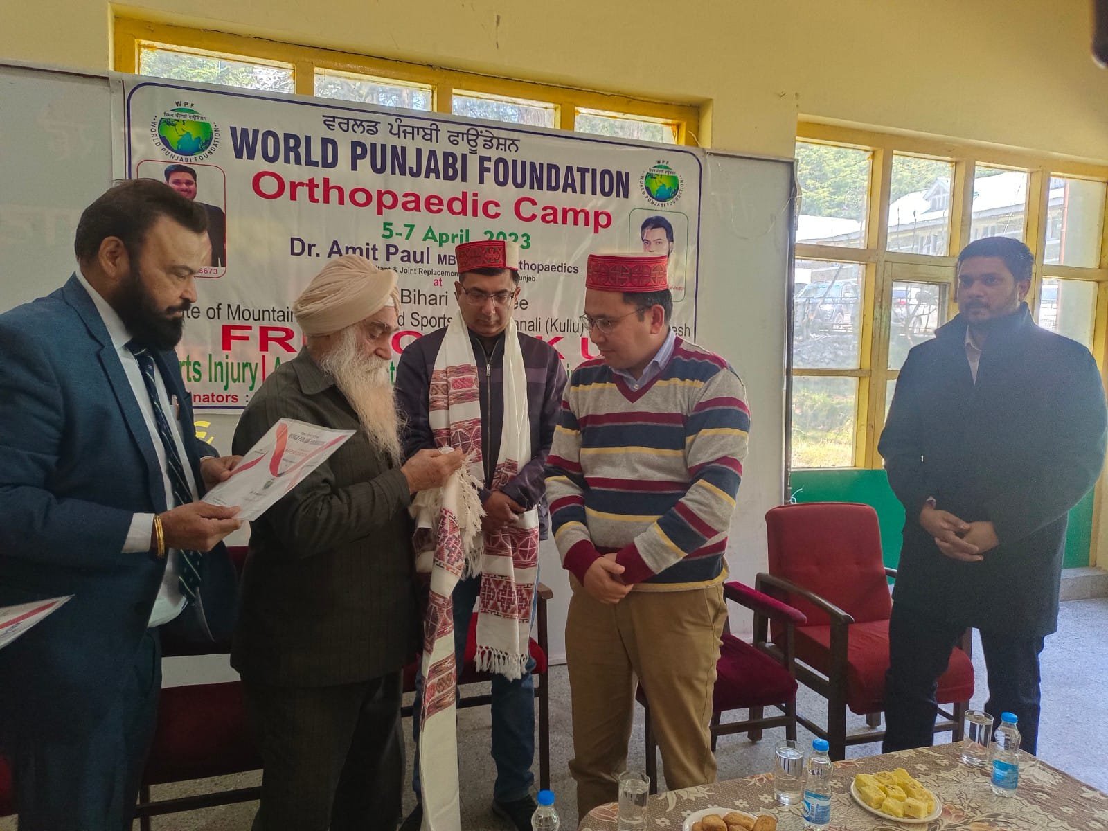 वर्ड पंजाबी फाउंडेशन ने अटल बिहारी वाजपेयी पर्वतरोहण संस्थान मनाली में निश्शुल्क स्वास्थ्य जांच शिविर लगाया। एसडीएम मनाली रमण शर्मा ने शिविर का विधिवत शुभारंभ किया। 30 मरीज से अधिक मरीज स्वास्थ्य शिविर में पहुंचे। तीन दिवसीय शिविर में हड्डियों तथा जोड़ों की बीमारियों से ग्रस्त मरीजों की जांच की जा रही है। मुख्य अतिथि पहुंचे एसडीएम रमण ने वर्ड पंजाबी फाउंडेशन के कार्य की सराहना की। उन्होंने लोगों से आग्रह किया कि इस स्वास्थ्य शिविर का लाभ उठाएं। एसडीएम ने कहा कि प्रशासन भी स्वास्थ्य सुविधाओं को लेकर गम्भीर है। उन्होंने कहा कि चलने फिरने में असमर्थ बुजुर्गों के स्वास्थ्य की घर द्वार पर जांच की जाएगी। चलने फिरने में असमर्थ बुजुर्गों महिलाओं व बच्चों को चिन्हिग किया जाएगा और घर द्वार पर स्वास्थ्य सुविधाएं मुहैया करवाई जाएगी। वर्ड पंजाबी फाउंडेशन के चेयरमेन दर्शन सिंह हरविंद्र ने कहा कि मनाली से उनका गहरा नाता रहा है तथा बचपन की यादें जुड़ी है। उन्होंने बहुत पहले स्वास्थ्य शिविर लगाने की सोची थी। आज वह शिविर लगाने में सफल हुए हैं।उन्होंने कहा कि आगे भी इस तरह के प्रयास किए जाएंगे। हड्डी विशेषज्ञ डॉ. अमित पाल ने कहा कि वह तीन दिन तक मनाली में अपनी सेवाएं देंगे। इस दौरान गुरुद्वारा प्रवंधन कमेटी के चेयरमैन जसवीर सिंह गुलहटी ने शिविर आयोजित करने पर वर्ल्ड पंजाबी फाउंडेशन के आभार जताया। संस्था का सहयोग कर रहे मनाली निवासी अजय अबरोल और मनजीत गुलहटी ने लोगों से इस शिविर का लाभ उठाने का आग्रह किया।