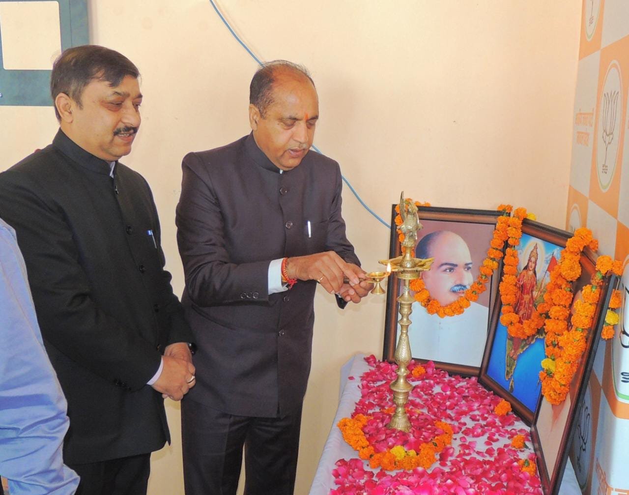 भाजपा नेता प्रतिपक्ष जय राम ठाकुर एवं प्रदेश अध्यक्ष सुरेश कश्यप ने भाजपा मुख्यालय दीपकमल चक्कर शिमला में ध्वजारोहण कर भाजपा का 44 वां स्थापना दिवस मनाया, उनके साथ भाजपा प्रदेश महामंत्री त्रिलोक जमवाल विशेष रूप में उपस्थित रहे। कार्यक्रम के उपरांत सभी भाजपा नेताओं ने वर्चुअल माध्यम से राष्ट्रीय अध्यक्ष जगत प्रकाश नड्डा एवं प्रधानमंत्री नरेंद्र मोदी का उद्बोधन सुना। इस मौके पर भाजपा के नेता प्रतिपक्ष जयराम ठाकुर और प्रदेश अध्यक्ष सुरेश कश्यप ने सभी कार्यकर्ताओं को भाजपा के स्थापना दिवस की हार्दिक शुभकामनाएं एवं बधाई भी दी। जयराम ठाकुर ने कहा कि भाजपा आज विश्व का सबसे बड़ा राजनीतिक दल है और इसके लिए सभी कार्यकर्ताओं ने अथक संघर्ष किया है जो स्वरूप आज भारतीय जनता पार्टी का अंतरराष्ट्रीय स्तर पर है वह लाखों कार्यकर्ताओं की मेहनत का परिणाम है। उन्होंने कहा भाजपा सबका साथ-सबका विकास-सबका विश्वास और सबका प्रयास के मंत्र के साथ काम कर रही है। सामाजिक न्याय और सशक्तिकरण को हमने हमेशा अपने हृदय और कार्यशैली में सर्वोच्च प्राथमिकता दी है। सामाजिक न्याय हमारे लिए राजनीतिक नारेबाजी का हिस्सा नहीं बल्कि हमारे लिए आर्टिकल ऑफ फेथ है। सुरेश कश्यप ने कहा की विपक्षी दल जितना मर्जी प्रयास कर ले पर प्रधानमंत्री नरेंद्र मोदी की लोकप्रियता को कम नहीं कर सकते जिस प्रकार से प्रधानमंत्री जन जन से जुड़े हैं और सभी कार्यकर्ताओं को साथ लेकर चलते हैं उससे साफ दिखता है कि आने वाले लोकसभा चुनावों में एक बार फिर भाजपा की सशक्त सरकार भारत में बनने जा रही है। उन्होंने कहा हमारा समर्पण है मां भारती को, हमारा समर्पण है देश के कोटि-कोटि जनों को, हमारा समर्पण है देश के संविधान को। आज भाजपा विकास और विश्वास का पर्याय है, नए विचार का पर्याय है और देश की विजय यात्रा में एक मुख्य सेवक बन कर अपनी भूमिका निभा रही है।