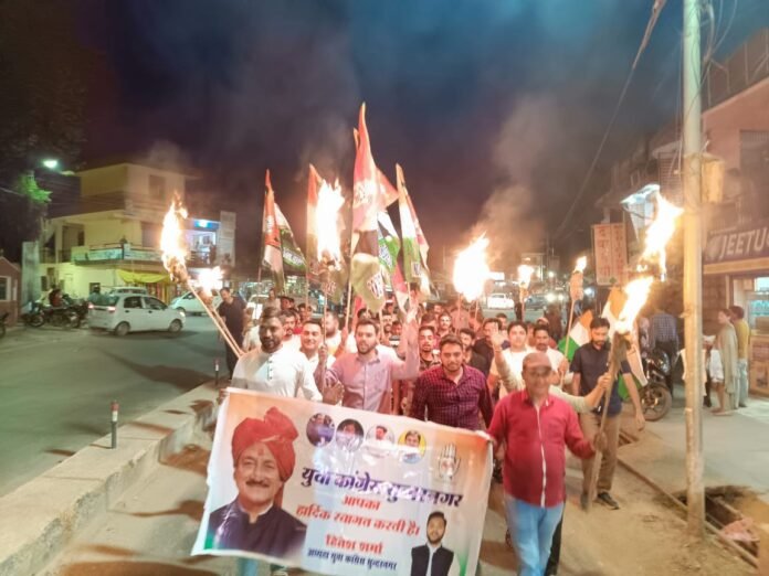 मंडी : राहुल गांधी के समर्थन में युवा कांग्रेस सुंदरनगर ने निकाला मशाल जुलूस