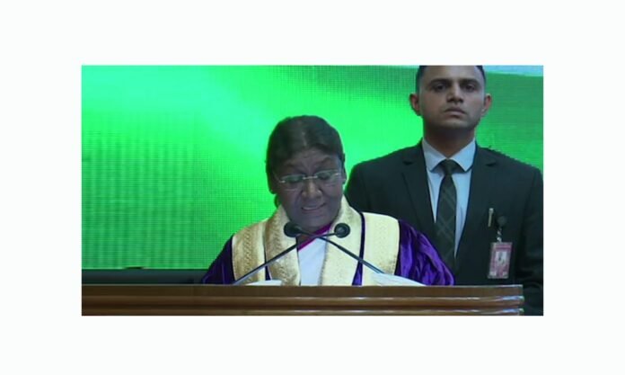 राष्ट्रपति ने कहा कि आधुनिक भारत के सबसे बड़े शिक्षाविदों में से एक, डॉक्टर सर्वपल्ली राधाकृष्णन ने एक दीक्षांत समारोह में विद्यार्थियों को संबोधित करते हुए कहा था शिक्षा की किसी भी संतोषजनक प्रणाली का उद्देश्य व्यक्ति का संतुलित विकास होना चाहिए और ज्ञान और ज्ञान दोनों पर जोर देना चाहिए। ज्ञानम्, विज्ञान-सहितम्। इसे न केवल बुद्धि को प्रशिक्षित करना चाहिए बल्कि मनुष्य के हृदय में अनुग्रह लाना चाहिए। (अनुद्धृत) राष्ट्रीय शिक्षा नीति 2020 भी इसी भावना के साथ इक्कीसवीं सदी के विद्यार्थियों के समग्र और बहु-आयामी विकास के लिए गुणवत्तापूर्ण शिक्षा प्रदान करने के उद्देश्य से बनाई गई है। हमारे संविधान में कहा गया है कि यह हर नागरिक का मूल कर्तव्य है कि वह वैज्ञानिक दृष्टिकोण यानी , वैज्ञानिक मिजाज मानव-वाद यानी मानवतावाद और ज्ञानार्जन तथा सुधार की भावना यानी पूछताछ और सुधार की भावना का विकास करे। आज आप सभी अपने लक्ष्यों की प्राप्ति के लिए जीवन के एक नए चरण में प्रवेश कर रहे है। मैं चाहती हूं कि आप सभी विद्यार्थी अपने निजी लक्ष्यों को राष्ट्रीय लक्ष्यों से जोड़े और अपने चुने हुए क्षेत्र में आगे बढ़ते हुए देश के विकास में अपना योगदान दें।