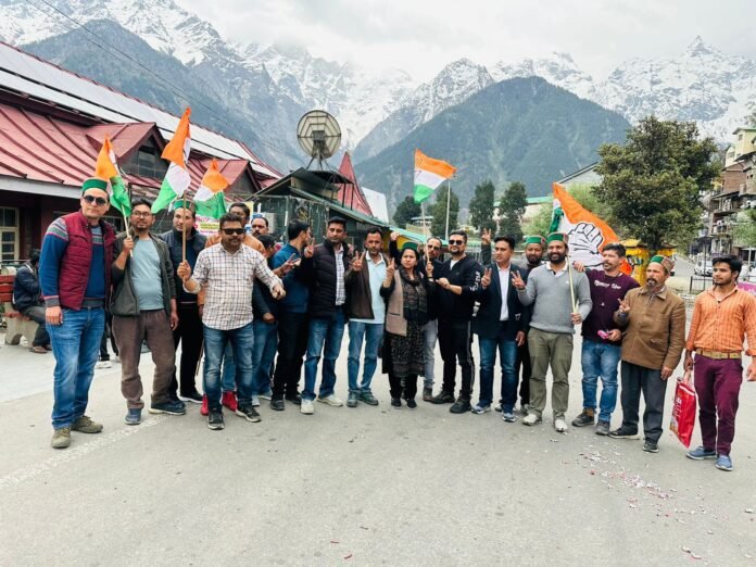 कर्नाटक में कांग्रेस की जीत के बाद किन्नौर कांग्रेस के पदाधिकारियों ने रैली निकालकर नारेबाजी की