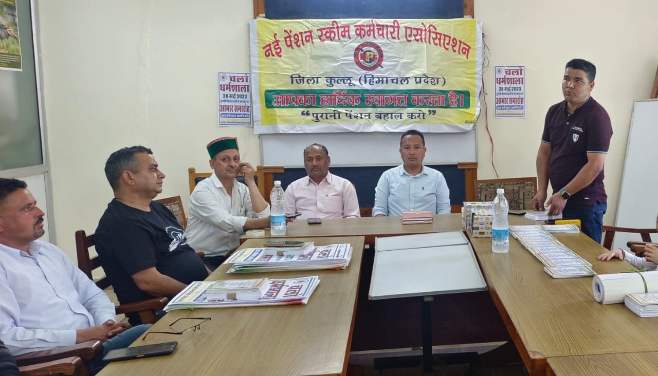 ज़िला मुख्यालय कुल्लू में न्यू पेंशन स्कीम कर्मचारी महासंघ जिला कुल्लू की जिला स्तरीय बैठक संपन्न हुई। जिसमें जिला कार्यकारिणी और नौ खंडों के पदाधिकारियों ने भाग लिया। इस बैठक में निर्णय लिया गया कि जिला कुल्लू के सभी खंडों से हजारों कर्मचारी 28 मई को पुरानी पेंशन बहाली के लिए होने जा रहे आभार समारोह में धर्मशाला जाएंगे। बैठक में इस समारोह की तैयारियों का जायजा लिया गया और सभी को आवश्यक दिशा निर्देश दिए गए। जिला के सभी विभागों के इस मौके पर यह निर्णय लिया गया है कि आभार समारोह में वे सभी कर्मचारी शामिल रहे जो हिमाचल सरकार द्वारा जारी पेंशन की अधिसूचना के बाद पुरानी पेंशन व्यवस्था में शामिल हुए हैं वे सरकार का आभार व्यक्त करेंगे। इस समारोह के लिए मुख्यमंत्री के साथ साथ सभी मंत्रियों विधायकों और विभिन्न विभागों के कर्मचारियों को आमंत्रित किया जा रहा है। जिला अध्यक्ष विनोद डोगरा ने कहा है कि हिमाचल सरकार ने 2003 के बाद बंद हुई पुरानी पेंशन को बहाल करने का ऐतिहासिक निर्णय लिया है जिसके लिए हिमाचल के डेढ़ लाख कर्मचारी सरकार के सदैव आभारी रहेंगे। उन्होंने जिला के कर्मचारियों से अपील की कि मुख्यमंत्री सुख आश्रय कोष के लिए अधिक से अधिक अनुदान करें। इस अवसर पर राज्य कार्यकारिणी से अजीत, जिला कार्यकारिणी से ओमप्रकाश, जगन्नाथ, रूम सिंह, सुनीता कटोच, मीना शर्मा, विनोद, संतोष और सभी खंड अध्यक्ष छबील, विकास सूद, राजेश ठाकुर, धनीराम, बुधराम आदि उपस्थित रहे।