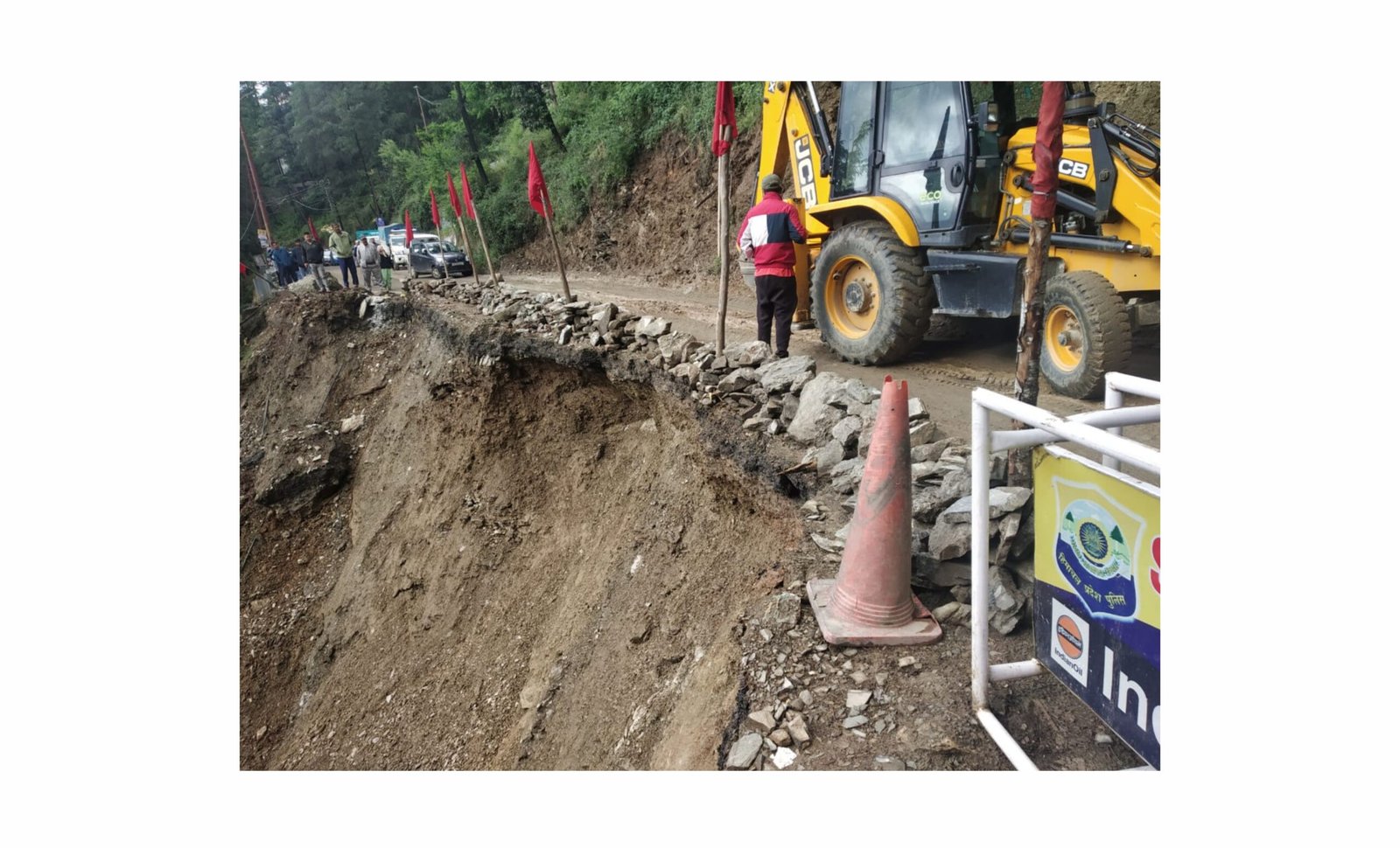 जिला शिमला के उपमंडल ठियोग में देर रात को भारी बारिश हुई है जिसके कारण बिजली विभाग के कार्यालय के पास एन एच-5 में भूस्खलन होने के कारण रोड़ भारी वाहनों के लिए बंद हो गया है | इस स्थान पर डंगे लगने का कार्य चल रहा है | काफी समय से ये सड़क खराब पड़ी थी लेकिन अब इसमें कार्य किया जा रहा है | वहीं अगर बायपास जो की पिछले कई वर्षो से नहीं बन पाया है अगर यह बन गया होता तो आज शायद लोगों को इतनी पेरशानी का सामना न करना पड़ता | वहीं पुलिस विभाग द्वारा भारी वाहनों के लिए विकल्पी मार्ग का इस्तेमाल करने के लिए लोगों से आग्रह किया है | वहीं डीएसपी ठियोग सिद्धार्थ शर्मा ने जानाकारी देते हुए बताया है कि उपरोक्त मार्ग को बहाल करने का कार्य प्रगति पर है। शिमला पुलिस आपसे अनुरोध करती है कि यातायात के लिए वैकल्पिक मार्गों का उपयोग करें, रोहडू, कोटखाई और चौपाल की ओर से शिमला आने वाले वाहन तथा शिमला से रोहडू, कोटखाई तथा चौपाल जाने वाले वाहन सैंज-धमांधरी-फागू रोड़ का इस्तेमाल करें। रोहडू, कोटखाई और चौपाल की ओर से सोलन और सोलन से रोहडू, कोटखाई तथा चौपाल जाने वाले वाहन वाया सैंज-बलग-सोलन रोड़ का इस्तेमाल करें। रामपुर से शिमला और शिमला से रामपुर जाने वाले वाहन वाया सुन्नी-बसंतपुर रोड़ का इस्तेमाल करें।
