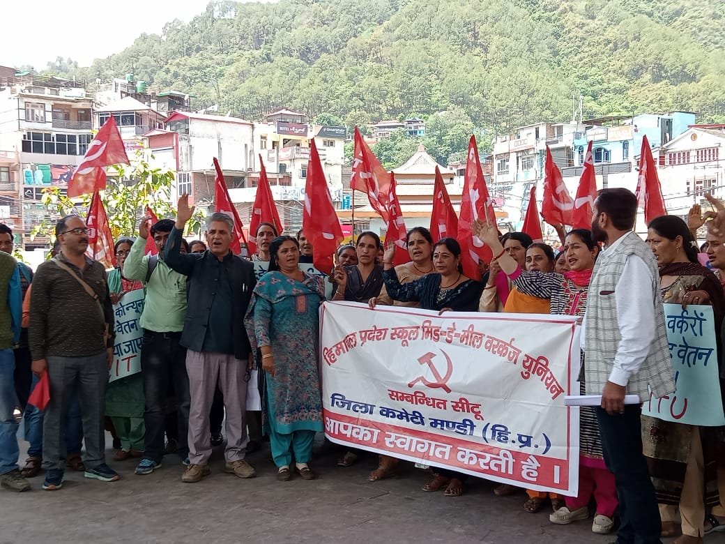 पूर्व में रही भाजपा सरकार से मिड डे मील वर्कर ने 10 महीने के बजाय पूरे 12 महीने वेतन देने की मांग रखी थी। लेकिन पूर्व मुख्यमंत्री जयराम ठाकुर ने मिड डे मील वर्करों की इस मांग अनसुना कर दी था। जबकि हाईकोर्ट ने मिड डे मील वर्कर को 12 महीने वेतन देने का फैसला सुनाया था। अब इस फैसले को प्रदेश कांग्रेस सरकार लागू करें और मिड डे मील वर्कर को पूरे 12 महीने वेतन दे। यह मांग आज सीटू के बैनर तले धरना प्रदर्शन के दौरान मिड डे मील वर्कर ने उठाई है। वहीं इस दौरान सीटू ने मिड डे मील वर्कर की छंटनी पर भी प्रदेश सरकार को घेरा। सीटू का कहना है कि मिड डे मील वर्कर्स पिछले 20 -20 सालों से स्कूलों में दोपहर भोजन बनाने का काम कर रही है और अब स्कूलों में बच्चों के कम संख्या होने व स्कूल बंद करने के कारण उन्हें हटाया जा रहा है। सीटू ने इसका विरोध करते हुए मिड डे मील वर्कर की छंटनी को रोकने और इन्हें विभाग में ही मर्ज करने के लिए नीति बनाने की मांग उठाई है ।इस मौके पर सीटू जिला प्रधान भूपेंद्र सिंह ने कहा कि प्रदेश सरकार हाईकोर्ट के फैसले के अनुसार मिड डे मील वर्कर को 10 महीने के बजाय 12 महीने का वेतन दे। उन्होंने कहा कि मिड डे मील वर्कर बिना किसी छुट्टी के लगातार अपनी सेवाएं दे रही है और हैरानी की बात है कि विभाग द्वारा मिड डे मील वर्कर को तीन चार महीने बाद वेतन दिया जा रहा है। उन्होंने प्रदेश सरकार से मिड डे मील वर्करों को आंगनवाड़ी वर्करों की तरह साल में 20 छुट्टियां, वर्दी व साथ हरियाणा की तर्ज पर वेतन देने की मांग उठाई है। उन्होंने कहा कि मिड डे मील वर्करों को भी विभागीय कर्मचारी बनाने के लिए सरकार पोलिसी बनाएं।