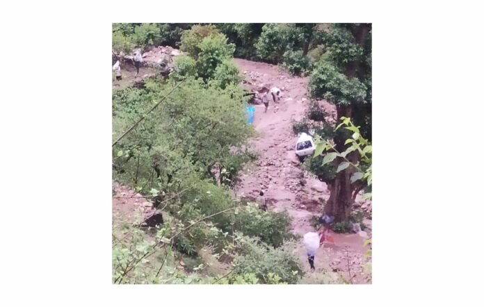 मंडी जिला के दुर्गम क्षेत्र ग्राम पंचायत धनयारा में मंगलवार देर शाम बादल फटने से बाढ़ आने से भारी तबाही हुई है। इस घटना में दोगरी, हाड़ाबोई और करला गांव के लोगों की कई बीघा जमीन भी बाढ़ के पानी में बह गई है। बादल फटने से दो गाड़ियां पानी में बह गई हैं और कुछ गाड़ियों को कड़ी मशक्कत के बाद सुरक्षित स्थानों पर पहुंचाया गया है। बादल फटने से एक गाय की भी मौत हो गई है। वहीं स्थानीय लोगों और प्रशासन ने करीब 4 घंटे का रेस्क्यू ऑपरेशन चलाकर 40 लोगों को सुरक्षित स्थानों पर पहुंचाया गया है। जानकारी देते हुए ग्राम पंचायत धनयारा की प्रधान मीरा देवी ने बताया कि मंगलवार शाम करीब 5:30 बजे के आसपास क्षेत्र में बादल फटने से भारी तबाही हुई है। लोगों की कई बीघा जमीन बाढ़ में बह गई है और 2 गाड़ियों सहित 3 रेहड़िया भी बह गई है। बाढ़ में फंसे 40 लोगों को सुरक्षित स्थानों पर पहुंचाया गया है। क्षेत्र के सभी संपर्क मार्ग भी टूट गए हैं। उन्होंने बताया कि रात होने के चलते रेस्क्यू ऑपरेशन में परेशानी आ रही है। नुकसान का आंकलन सुबह होते ही लगाया जाएगा। वहीं मामले पर खंड विकास अधिकारी सुंदरनगर विवेक चौहान ने कहा कि ग्राम पंचायत धनयारा में हुए नुकसान को लेकर स्थिति नियंत्रण में है। उन्होंने कहा कि बादल फटने से अचानक आई बाढ़ के कारण विभिन्न जगहों में फंसे हुए लोगों को उनके घरों में सुरक्षित पहुंचा दिया गया है। क्षेत्र में हुए नुकसान का आकलन राजस्व विभाग के अधिकारियों द्वारा किया जा रहा है।