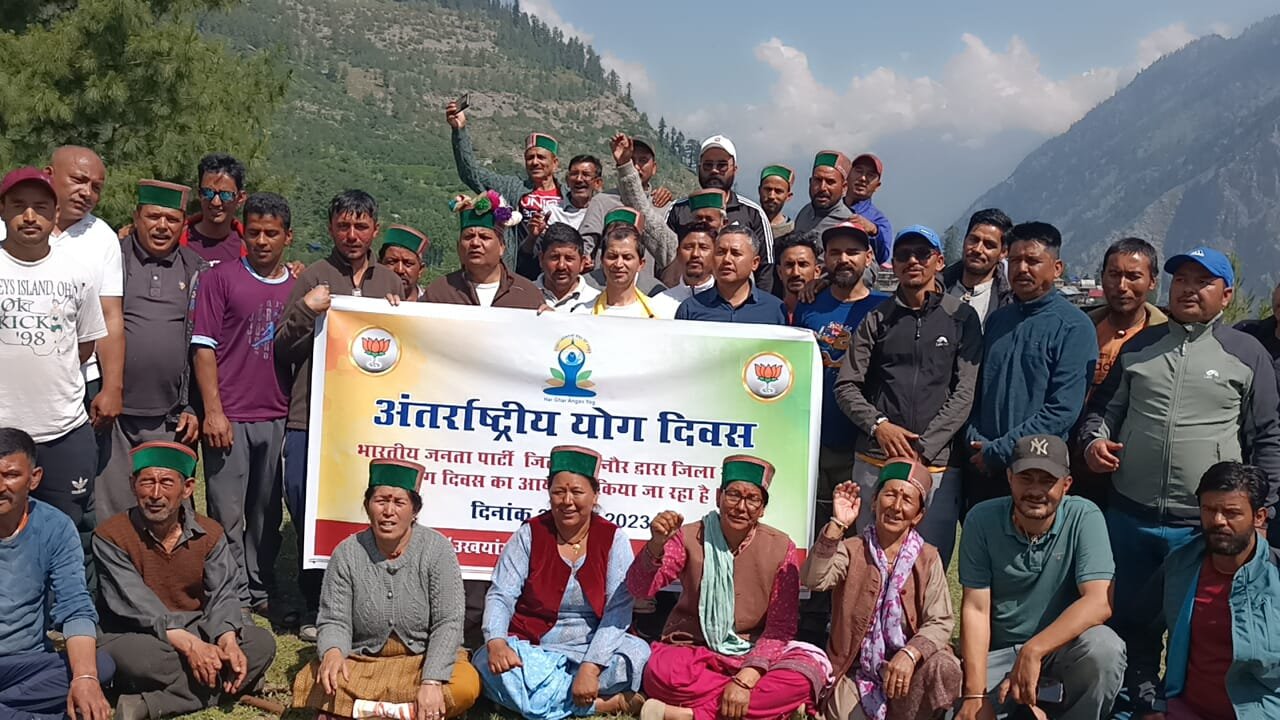 जनजातीय जिला किन्नौर के चांसू गांव के 9,206 फीट की उंचाई पर स्थित गंगोत्री के चमन ऋषि की ऐतिहासिक तपो स्थली ऊखांग सांथांग में आज़ 9वें अंतर्राष्ट्रीय योग दिवस के अवसर पर भाजपा किन्नौर ने प्रदेश वन विकास निगम के पूर्व उपाध्यक्ष सूरत नेगी की अध्यक्षता में जिला स्तरीय योग दिवस मनाया। योग इंस्ट्रक्टर प्रीतम ने इस अवसर पर योग के उपस्थिति जनमानस को योग की विभिन्न क्रियाएं करवाई। वर्तमान समय में तपस्वी चमन ऋषि के नाम पर रखा गया चांसू गांव को चांद नगर के नाम से भी जाना जाता है। कहावतो में चांसू गांव में सोने के हल होने की बात कही जाती है तो वही चांसू गांव को स्लैट (पत्थर) के भंडार के नाम से भी जाना जाता है। सुरत नेगी ने कहा कि देश के प्रधानमंत्री नरेंद्र मोदी के आह्वाहन पर भाजपा द्वारा प्रत्येक विधानसभा क्षेत्रों में जिला स्तरीय योग उत्सव मनाने की योजना बनाई थीं जिसको लेकर आज भाजपा किन्नौर ने भी चांसु गांव में सामूहिक योग दिवस मनाया। उन्होने कहा कि प्रधानमंत्री नरेंद्र मोदी के आह्वाहन पर आज पुरे विश्व में योग दिवस मनाया जा रहा है जो भी भारत के प्रत्येक व्यक्ति की लिए गर्व की बात है। उन्होने कहा कि योग को किसी धर्म से न जोड़कर सभी को स्वस्थ्य रहने के लिए प्रतिदिन योग करना चाहिए। सुरत नेगी ने बताया कि पर्यटन को बढ़ावा देने, ऐतिहासिक स्थलों को प्रमोट करने के साथ- साथ हर घर तक योग व समाज को निरोग करने के उद्देश्य से अंतर्राष्ट्रीय योग दिवस पर जिला के विभिन्न क्षेत्रों पर योग दिवस मनाया जा रहा है। इस अवसर पर भाजपा जिला अध्यक्ष संजीव हारा, महामंत्री यशवंत नेगी, कल्पा मंडल अध्यक्ष परविंदर, पूह मंडल अध्यक्ष सुभाष छोरज्ञा, महामंत्री जीत राम व महेंद्र सिंह, ठाकुर सेन नेगी स्मारक समिति अध्यक्ष भीष्म नेगी, युवा मोर्चा जिला अध्यक्ष अभिनव, चांसू पंचायत प्रधान बीरबल लोकटस ,पूर्व प्रधान ईश्वर सिंह व सनम पालमो,महिला मंडल प्रधान प्रेमी कांता, महिला मोर्चा अध्यक्ष ईश्वरी देवी, पूर्व उप प्रधान प्रताप, कृष्ण, यशवंत, शेर सिंह आदि उपस्थित रहे।