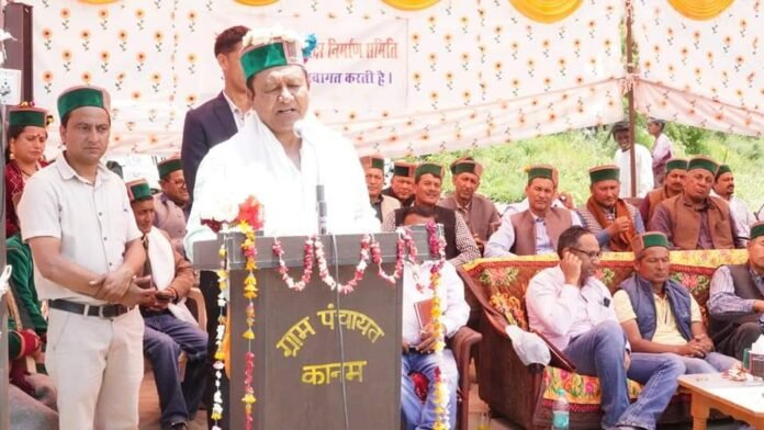 राजस्व, बागवानी एवं जनजातीय विकास मंत्री जगत सिंह नेगी ने आज किन्नौर जिला के पूह उपमण्डल की ग्राम पंचायत कानम का दौरा कर स्थानीय लोगों की जनसमस्याएं सुनीं। उन्होंने लोगों की सभी उचित मांगों को पूर्ण करने का आश्वासन दिया। इससे पूर्व, राजस्व मंत्री ने 1.72 करोड़ रुपए की लागत से निर्मित होने वाले देवता डाबला जी सांस्कृतिक एवं सामुदायिक केंद्र तथा 1.58 करोड़ रुपए से निर्मित होने वाले ग्राम सभा हाल एवं बहुउद्देशीय सामुदायिक केंद्र का शिलान्यास भी किया। उन्होंने कहा कि पंचायत घर में भवन का निर्माण भी किया जाएगा ताकि पंचायती राज विभाग को सुदृढ़ किया जा सके। इसके अतिरिक्त स्पोट्र्स कल्ब के भवन का निर्माण करने के लिए इसे बजट में डाल कर धनराशि उपलब्ध करवाने के प्रयास किए जाएंगे। कानम में जनसभा को संबोधित करते हुए जगत सिंह नेगी ने कहा कि वर्तमान सरकार सभी के लिए कल्याणकारी और व्यवस्था परिवर्तन की सरकार है। राज्य सरकार ने जनहित में ऐसे अनेक निर्णय लिए है, जो हिमाचल प्रदेश को विकास की नई ऊंचाइयों पर ले जायेगा। प्रदेश सरकार किन्नौर जिला में बागवानी को और अधिक बढ़ावा देने के लिए दृढ़-संकलिप्त है। इसी के दृष्टिगत बागवानी मिशन के तहत जिला किन्नौर में 50 करोड़ रुपये खर्च कर किसानों व बागवानों को 20 लाख पौधे आबंटित किए जाएंगे। इसके अलावा टपक सिंचाई के लिए किसानों को 80 प्रतिशन के अनुदान का प्रावधान किया गया। राजस्व मंत्री जगत सिंह नेगी ने कहा कि राज्य सरकार ने अपने पहले ही बजट में शिक्षा में सुधार एवं आवश्यक अधोसरंचना का विस्तार करने के दृष्टिगत अहम कदम उठाए हैं जिसके तहत गुणात्मक शिक्षा प्रदान करने के लिए एक विस्तृत कार्ययोजना तैयार की जा रही है। इसके अतिरिक्त प्रदेश के युवाओं को प्रतियोगी परीक्षाओं की तैयार के लिए आवश्यक पुस्तकों सहित पुस्तकालयों का निर्माण व नेशनल लाईब्रेरी का एक्सेस भी उपलब्ध करवाया जाएगा। जगत सिंह नेगी ने कहा कि शिक्षा में सुधार के लिए यह आवश्यक है कि अध्यापक रूचि लेकर विद्यार्थियों को गुणात्मक शिक्षा प्रदान करने की दिशा में कार्य करें तभी विद्यार्थी उत्कृष्ट शिक्षा प्राप्त कर सकते हैं जिसका उद्धारण है राजकीय प्राथमिक पाठशाला काफनू में विद्यार्थियों को प्रदान की जा रही गुणवत्तापूर्ण शिक्षा जो जिला ही नहीं अपितु पूरे प्रदेश के लिए एक उत्कृष्ट शिक्षा मॉडल है। इस अवसर पर प्रधान ग्राम पंचायत कानम चंद्र कीर्ति ने राजस्व मंत्री व अन्य अतिथिगणों का स्वागत किया और पंचायत की विभिन्न मांगे भी मंत्री महोदय के समक्ष रखीं। इस अवसर पर ग्राम कांग्रेस समिति के प्रधान तितर जीत नेगी और ग्राम पंचायत कानम मंदिर समिति के सचिव पवन ने भी अपने विचार प्रकट किए। जनजातीय सलाहका