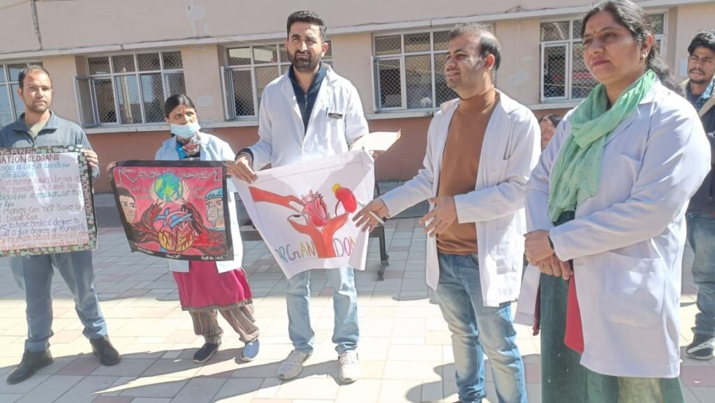 शिमला के आईजीएमसी में शुक्रवार को स्टेट ऑर्गन एंड टिशु ट्रांसप्लांट ऑर्गेनाइजेशन (सोटो ) हिमाचल प्रदेश व आई बैंक की ओर से अंगदान व नेत्रदान के प्रति जागरूकता अभियान चलाया गया। इसमें नेत्र रोग विभाग के असिस्टेंट प्रो. डॉ तरुण सूद व सोटो की टीम ने जानकारी देते हुए कहा कि उन्होंने कहा कि नेत्रदान कोई भी व्यक्ति कर सकता है चाहे वह किसी भी जाति, धर्म, समुदाय और लिंग का हो। नेत्रदान करने और उसके बाद प्रत्यारोपण करने की प्रक्रिया में किसी प्रकार की फीस नहीं ली जाती। आईजीएमसी का नेत्र बैंक 25 किलोमीटर के दायरे में घर पर हुई मृत्यु के बाद 6 घंटे के भीतर दान किए गए नेत्र एकत्रित करता है। डॉक्टर सूद ने बताया कि नेत्र निकालने के बाद व्यक्ति के शरीर में आर्टिफिशियल नेत्र लगाए जाते हैं ताकि वह भद्दा दिखाई ना दे । मरने के बाद नेत्रदान करना दूसरों की जिंदगी में उजाला लेकर आता है। उन्होंने कहा कि किसी व्यक्ति का जीवन बचाने के लिए डॉक्टर होना ही जरूरी नहीं है बल्कि लोग मृत्यु के बाद भी अपने अंगदान करके जरूरतमंद का जीवन बचा सकते हैं। अंगदान करने वाला व्यक्ति ऑर्गन के जरिए 8 लोगों का जीवन बचा सकते हैं।