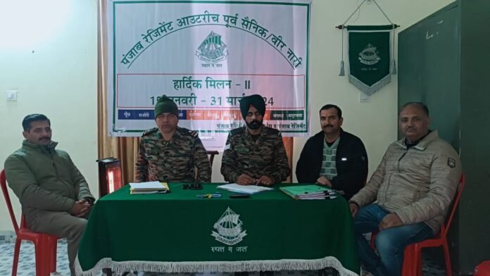 पंजाब रेजिमेंट आउट रीच पूर्व सेनिक वीर नारी हार्दिक मिलन कार्यक्रम के तहत राजगढ़ में एक विशेष शिविर का आयोजन किया गया । इस शिविर का आयोजन पूर्व सैनिक संगठन राजगढ़ के सौजन्य से किया गया | जानकारी देते पूर्व सैनिक संगठन के अध्यक्ष सुबेदार मेजर राजेश चौहान ने कहा कि पंजाब रेजिमेंट के वैटर्न एक्स सर्विस मैन एवं विधवा पेंशन संबंधी कार्य इस शिविर में निपटायें गये । इस मौके पर कर्नल आफ द पंजाब रेजिमेंट लेफ्टिनेंट जनरल जे पी मैथ्यू वाई एस एस ए बी एस एम ब्रिगेडियर एस सी कंडपाल कमांडैंट व और आई सी रिकार्ड लेफ्टिनेंट कर्नल के चट्टोपाध्याय सी आर ओ लेफ्टिनेंट कर्नल अशोक ठाकुर, सुबेदार मेजर एस के अवस्थी ने पूर्व सेनिको व वीर नारी की समस्यायों को सुना । इन सभी लोगों का कहना था कि इस हार्दिक मिलन दो का यह मिशन है । जो सेना दिवस की पूर्व संध्या पर लांच किया गया है इस मिशन का मुख्य उद्देश्य उनकी शिकायतों को दर्ज करना व उनका समाधान करना है । उन्होने कहा कि इस कार्यक्रम के तहत विशेष रूप से पैंशन संबंधी मुद्दों पर स्पर्श व अन्य मुद्दों पर जम्बू कश्मीर , हिमाचल प्रदेश व पंजाब के तीन जिलों संगरूर , कपूरथला, पटियाला आदि को कंवर किया जा रहा है । इन सभी क्षेत्रो में पंहुचा कर जगह जगह ऐसे शिविरों या बैठकों का आयोजन किया जा रहा है ।