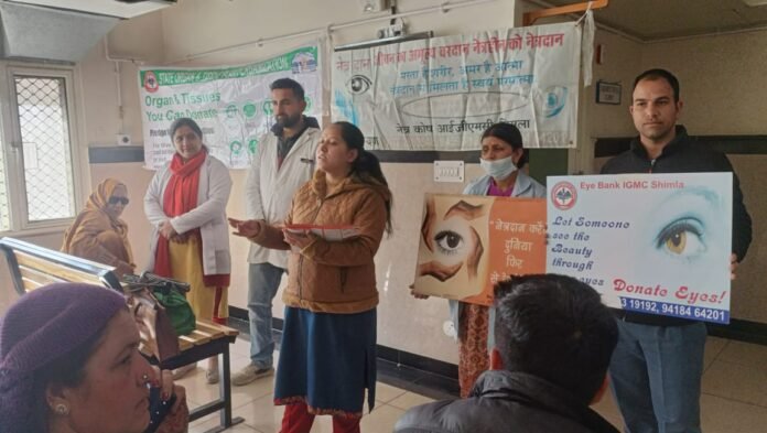 शिमला के आईजीएमसी में स्टेट ऑर्गन एंड टिशु ट्रांसप्लांट ऑर्गेनाइजेशन (सोटो ) हिमाचल प्रदेश व आई बैंक की ओर से अंगदान व नेत्रदान के प्रति जागरूकता अभियान चलाया गया। न्यू ओपीडी ब्लॉक और आई ओपीडी के बाहर मरीज के तीमारदारों को अंगदान में नेत्रदान की महत्वता के बारे में जानकारी दी गई। इसमें नेत्र रोग विभाग की ग्रीफ काउंसलर डॉ सारिका व सोटो की टीम ने जानकारी देते हुए कहा कि नेत्रदान कोई भी व्यक्ति कर सकता है चाहे वह किसी भी जाति, धर्म, समुदाय और लिंग का हो। नेत्रदान करने और उसके बाद प्रत्यारोपण करने की प्रक्रिया में किसी प्रकार की फीस नहीं ली जाती। आईजीएमसी का नेत्र बैंक 25 किलोमीटर के दायरे में घर पर हुई मृत्यु के बाद 6 घंटे के भीतर दान किए गए नेत्र एकत्रित करता है। ट्रांसप्लांट कोऑर्डिनेटर नरेश ने बताया कि नेत्र निकालने के बाद व्यक्ति के शरीर में आर्टिफिशियल नेत्र लगाए जाते हैं ताकि वह भद्दा दिखाई ना दे । मरने के बाद नेत्रदान करना दूसरों की जिंदगी में उजाला लेकर आता है। उन्होंने कहा कि किसी व्यक्ति का जीवन बचाने के लिए डॉक्टर होना ही जरूरी नहीं है बल्कि लोग मृत्यु के बाद भी अपने अंगदान करके जरूरतमंद का जीवन बचा सकते हैं। अंगदान करने वाला व्यक्ति ऑर्गन के जरिए 8 लोगों का जीवन बचा सकते हैं। जीवित अंगदाता किडनी, लीवर का भाग, फेफड़े का भाग और बोन मैरो दान दे सकते हैं, वहीं मृत्युदाता यकृत, गुर्दे, फेफड़े, पेनक्रियाज, कॉर्निया और त्वचा दान कर सकते हैं। गंभीर बीमारी से जूझ रहे मरीजों और दुर्घटनाग्रस्त मरीजों के ब्रेन डेड होने के बाद यह प्रक्रिया अपनाई जा सकती है। अस्पताल में मरीज को निगरानी में रखा जाता है और विशेष कमेटी मरीज को ब्रेन डेड घोषित करती है। मृतक के अंग लेने के लिए पारिवारिक जनों की सहमति बेहद जरूरी रहती है।