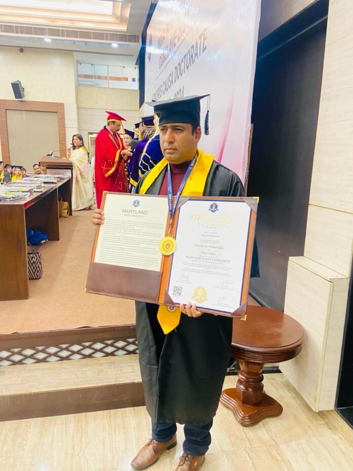 देश की राजधानी नई दिल्ली स्थित भारतीय संविधान क्लब में अमेरिकन मेरीलैंड यूनिवर्सिटी द्वारा आयोजित कार्यक्रम में धर्मशाला स्थित गुरु स्टडी सेंटर के संस्थापक डायरेक्टर रिशाद मोहम्मद खान को पीएचडी अवार्ड से सम्मानित किया गया है। गुरु स्टडी सेंटर के माध्यम से युवाओं को प्रतियोगी परीक्षाओं की कोचिंग दी जाती है। शिक्षा के क्षेत्र में स्टूडेंटस को बेहतर माहौल में कोचिंग लेकर कई युवा नीट की परीक्षा क्लीयर करके विभिन्न मेडिकल कालेजों में पढ़ाई कर रहे हैं। साथ ही हाल ही में घोषित जेई मेंस के रिजल्ट में भी गुरु स्टडी सेंटर का परिणाम बेहतर रहा है। शिक्षा क्षेत्र में कार्य कर रहे गुरु स्टडी सेंटर के संस्थापक डायरेक्टर रिशाद मोहम्मद खान को पीएचडी अवार्ड मिलने पर संस्थान के स्टूडेंटस व शिक्षकों में खुशी का माहौल है।