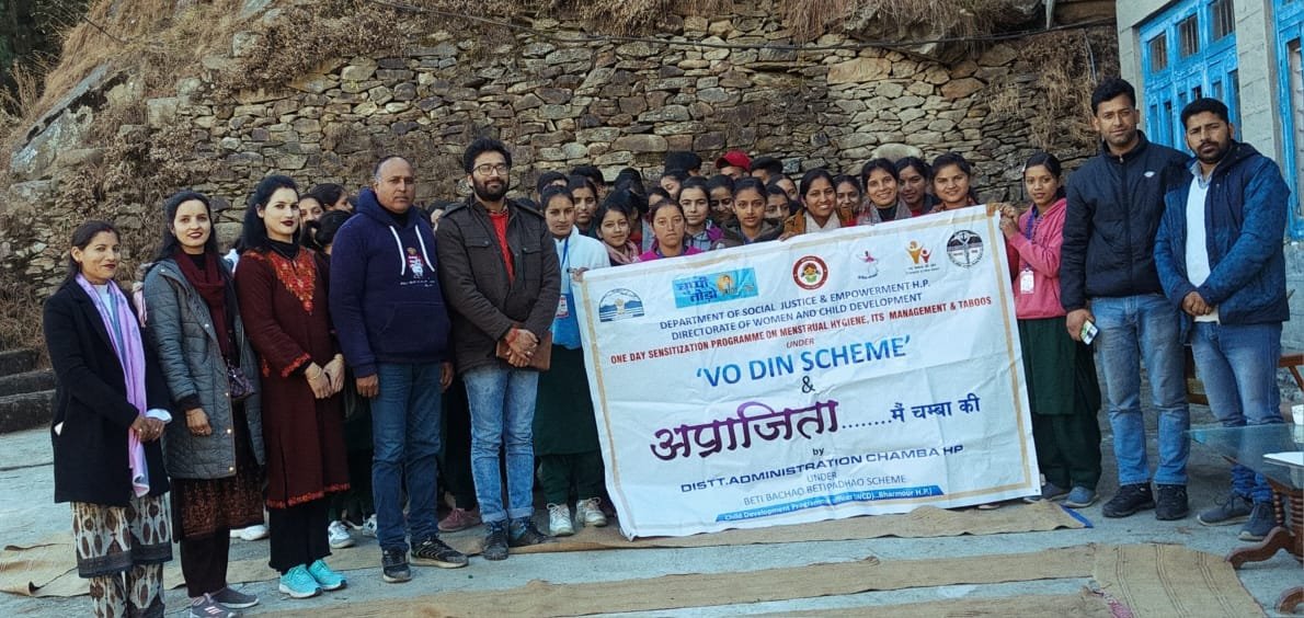 महिला एवं बाल विकास के तत्वावधान में  बुधवार को राजकीय औद्योगिक प्रशिक्षण भरमौर   में अपराजिता मैं चंबा की ‘वो दिन’ योजना के अन्तर्गत एक दिवसीय जागरूकता शिविर का आयोजन किया गया। चिकित्सा अधिकारी  डाॅ. नलिन मिन्हास ने शिविर में  मुख्यातिथि के रूप में भाग लिया । डाॅ. नलिन मिन्हास ने  कहा कि ‘वो दिन’ योजना का उद्देश्य  महिलाओं एवं किशोरियों को मासिक धर्म के दौरान हिम्मत व सहारा प्रदान करना है। उन्होंने मासिक धर्म के दौरान उचित आहार-व्यवहार की जानकारी दी  की  इस दौरान हर रोज स्नान करना आवश्यक होता है । कपड़ा या नैपकिन लगाने से पहले और बाद में साबुन से हाथ अवश्य धोएं। एक नैपकिन का एक बार ही इस्तेमाल करें। उन्होंने  महिलाओं एवं बच्चों में एनीमिया की रोकथाम के लिए  विस्तृत जानकारी भी प्रदान दी l उन्होंने कहा कि इन शिविरों के  माध्यम से महिलाओं  और किशोरियों को इस योजना से सम्बंधित सम्पूर्ण जानकारी  स्वास्थ्य विशेषज्ञों  द्वारा प्रदान की जा रही  हैं। शिविर में  मास्टर ट्रेनर वंदना और अनामिका ने भी साफ – सफाई और मासिक धर्म  के दौरान स्वच्छता तथा संतुलित आहार  के बारे विस्तृत जानकारी  प्रदान की। राजकीय औद्योगिक प्रशिक्षण भरमौर की छात्राओं ने भी बेटी बचाओ बेटी पढाओ के तहत अपने विचार भी सांझा किए । इस अवसर पर आईटीआई भरमौर से सुमन कुमार परियोजना एवं बाल विकास कार्यालय से विनोद और छात्र- छात्राओं सहित गणमान्य लोग उपस्थित रहे।