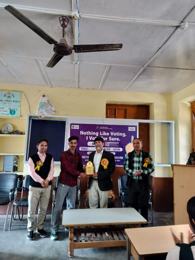 आज के महाविद्यालय ददाहू में नेहरू युवा केंद्र नाहन के सौजन्य से और आदर्श नवयुवक मंडल तिरमली दियाड (कल्याडी)के द्वारा मतदाता जागरूकता कार्यक्रम का आयोजन किया गया। इस कार्यक्रम का आगाज मुख्य अतिथि महाविद्यालय के प्राचार्य डॉक्टर पवन कुमार ने किया। आदर्श नवयुवक मंडल के अध्यक्ष भूपेंद्र सिंह और उनके सदस्यों ने इस कार्यक्रम में उपस्थिति देकर विद्यार्थियों को मतदाता के महत्व के बारे में विचार प्रकट किया। प्राचार्य ने सभी विद्यार्थियों को अपने मत के सदुपयोग के बारे में लोगों को जागरूक करने के लिए प्रेरित किया। कार्यक्रम के नोडल अधिकारी प्रोफेसर रमेश कुमार ने विद्यार्थी को लोकतंत्र में अपनी सहभागिता सुनिश्चित करने के बारे में विचार प्रकट किए। उसके पश्चात प्रोफेसर दिनेश कुमार ने मतदान को जन-जन की पुकार करने के बारे में प्रेरित किया कार्यक्रम के दौरान महाविद्यालय की विद्यार्थियों ने ददाहू बाजार में रैली निकालकर जनता को मत देने के महत्व के बारे में संदेश दिया। इस कार्यक्रम में डॉक्टर मिल्ला राम चौहान, सुरम्या गुसाई विशेष तौर पर उपस्थित रहे।