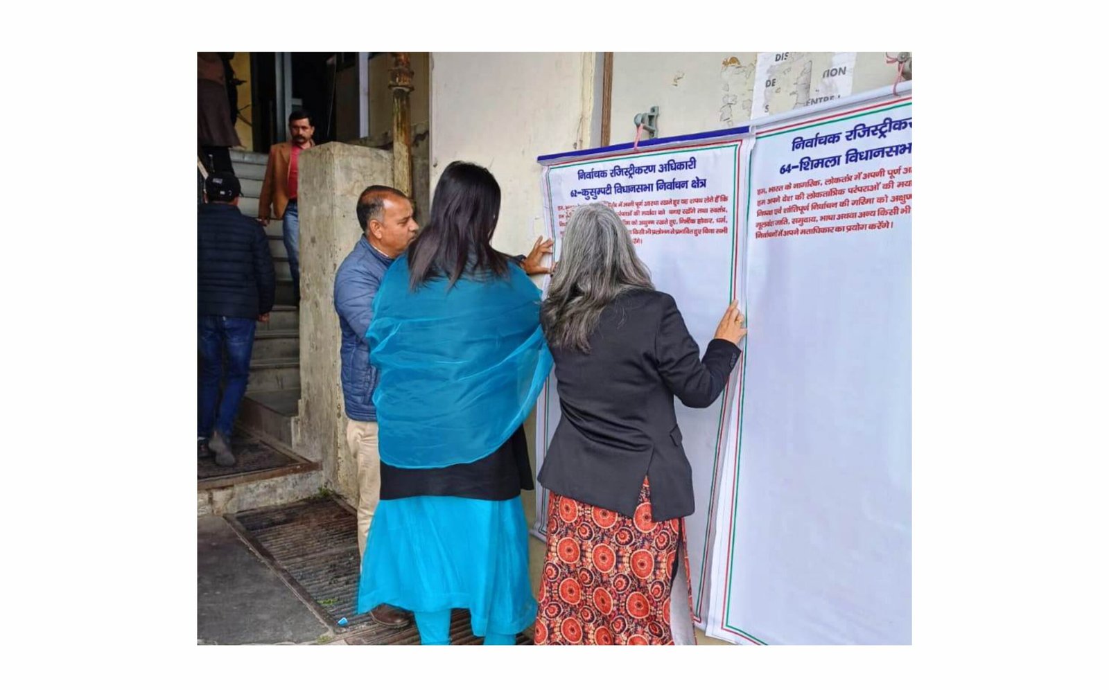 सुव्यवस्थित मतदाता शिक्षा एवं निर्वाचक सहभागिता कार्यक्रम (स्वीप) के तहत आज उपमण्डलीय निर्वाचन कार्यालय शिमला ग्रामीण में मतदान के प्रति जागरूकता हेतु आज यहां अतिरिक्त जिला दण्डाधिकारी शिमला ज्योति राणा द्वारा हस्ताक्षर अभियान का शुभारंभ किया गया। अतिरिक्त जिला दण्डाधिकारी शिमला ज्योति राणा द्वारा समस्त मतदाताओं से आगामी लोकसभा चुनावों में अपनी भागीदारी सुनिश्चित करने का आग्रह किया। उन्होंने कहा कि आगामी चुनाव में शत-प्रतिशत मतदान हो, इसके लिए मतदाताओ से 1 जून, 2024 को मतदान करने की अपील की। इस अवसर पर निर्वाचक पंजीकरण अधिकारी एवं (उपमण्डलाधिकारी) शिमला ग्रामीण कविता ठाकुर, नायब तहसीलदार लोकेंदर सिंह व् अन्य गणमान्य लोग उपस्थित रहे।