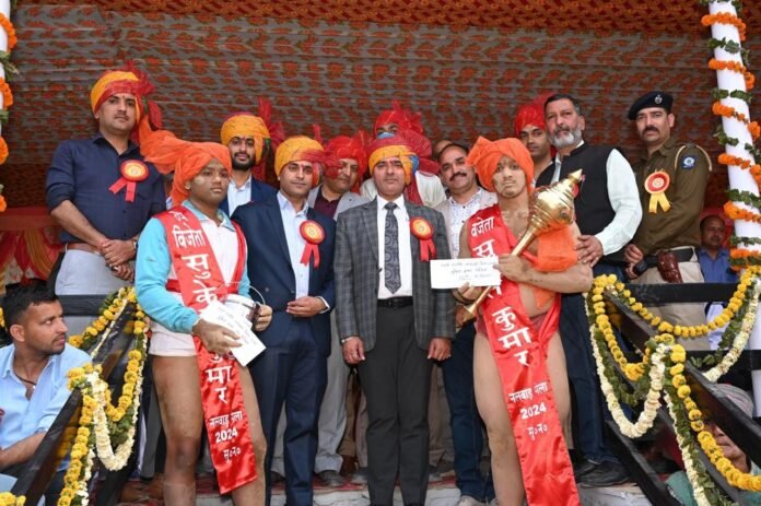 सुन्दरनगर का 7 दिवसीय राज्य स्तरीय नलवाड़ मेला 2024 वीरवार को सम्पन्न हो गया। अतिरिक्त जिला एवं सत्र न्यायाधीश सुन्दरनगर पंकज शर्मा ने 22 मार्च से शुरू हुए इस मेले के समापन समारोह में बतौर मुख्य अतिथि शिरकत की। उन्होंने नगौण स्टेडियम में आयोजित कुश्ती दंगल के समापन कार्यक्रम में भी भाग लिया। समापन समारोह में उन्होंने कहा कि हिमाचल प्रदेश के मेले एवं त्यौहार अपने में अनूठे होेते हैं और यह राज्य की समृद्ध सांस्कृतिक विरासत को संजोए हुए हैं। उन्होंने कहा कि मेलों की पुरातन परम्पराओं को भावी पीढ़ी के लिए संरक्षित रखा जाना चाहिए, क्योंकि यह एक राज्य एवं राष्ट्र के रूप में हमारी पहचान की पुष्टि करती हैं। उन्होंने कहा कि संस्कृति और इसकी विरासत हमारी राष्ट्रीय पहचान को परिभाषित करने के साथ ही हमारे मूल्यों, आस्था और आकांक्षाओं को प्रर्दशित एवं आकार भी प्रदान करती है। उन्होंने कहा कि मेले और त्यौहार लोगों में नव उर्जा का संचार करते हैं और हमें इनमें सक्रिय रूप से भाग लेना चाहिए। राज्य स्तरीय नलवाड़ मेले के अवसर पर आयोजित कुश्ती प्रतियोगिता की सुकेत कुमार प्रतियोगिता अंडर 17 में रिवालसर के पीयूष ने पहला तथा ध्वाल के सिद्धार्थ ने दूसरा स्थान हासिल किया, जिन्हें क्रमशः 11 हजार और गुर्ज तथा 9 हजार रुपये और बर्तन प्रदान किए गए। हिमाचल कुमार के लिए मंडी के नवीन ने पहला तथा खिलडा़ के सिद्धार्थ ने दूसरा स्थान हासिल किया, जिन्हें क्रमशः 31 हजार और गुर्ज तथा 25 हजार रुपये और बर्तन प्रदान कर मुख्यतिथि द्वारा सम्मानित किया गया। बता दें कि सुंदरनगर नलवाड़ मेले में हिमाचल कुमार प्रतियोगिता पहली बार आयोजित की गई। हिमाचल केसरी के लिए रोहतक के सोमवीर ने पहला तथा हरियाणा के विकास काला ने दूसरा स्थान हासिल किया, जिन्हें क्रमशः 61 हजार और गुर्ज तथा 41 हजार रुपये और बर्तन प्रदान कर मुख्यअतिथि द्वारा सम्मानित किया गया। इस अवसर पर राज्य स्तरीय नलवाड़ मेला कमेटी अध्यक्ष एवं एसडीएम सुंदरनगर गिरीश समरा, डीएसपी भारत भूषण, तहसीलदार अंकित शर्मा, बीडीओ विवेक चौहान, सीडीपीओ शिव सिंह वर्मा सहित अन्य गणमान्य व्यक्ति उपस्थित रहे।