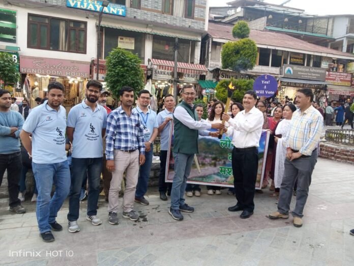 देश की गौरव एवं जिला निर्वाचन कुल्लू द्वारा नामित जिला इलेक्शन आईकॉन अंचल ठाकुर, सुविख्यात माउंट एवरेस्ट विजेता डिकी डोलमा एवं उत्तराखंड से माउंट एवरेस्ट विजेता अमीषा तथा एडवेंचर संगठन कुल्लू मनाली के पदाधिकारियों ने डॉ लाल सिंह डिप्टी डायरेक्टर नेहरू युवा केंद्र एवं जिला स्वीप नोडल अधिकारी, श्यामलाल हांडा, गिरधारी लाल शर्मा, प्रीतम सिंह एवं डॉ दुनी चंद राणा नोडल अधिकारी स्वीप 22 मनाली और संजीव की अगुवाई में लोकतंत्र की मशाल माल रोड मनाली में दौड़ लगाकर 1 जून 2024 को मत देने हेतु हजारों मतदाताओं को प्रेरित किया। उपमंडल अधिकारी मनाली रमन शर्मा ने लोकतंत्र की मशाल के समापन पर मशाल को डॉक्टर लाल सिंह डिप्टी डायरेक्टर नेहरू युवा केंद्र एवं जिला स्वीप के नोडल अधिकारी को सफलतम आयोजन के बाद विधिपूर्वक सौंपा। इस अवसर पर उन्होने एडवेंचर एसोसिएशन के पदाधिकारी कपिल नेगी, वोलेंटियर्स, बीएलओ को चुनाव स्मृति चिन्ह देकर सम्मानित किया।