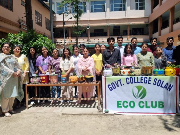 राजकीय महाविद्यालय सोलन के इको क्लब द्वारा छात्रों में पर्यावरण के संरक्षण के प्रति जागरूकता उत्पन्न करने के लिए 22 मई से 5 जून 2024 तक पर्यावरण संरक्षण पखवाड़े का आयोजन किया गया, जिसका प्रारंभ महाविद्यालय की प्राचार्या डॉक्टर रीटा शर्मा द्वारा किया गया । इस कार्यक्रम में लगभग 80 विद्यार्थियों ने भाग लिया। पखवाड़े में विभिन्न गतिविधियों का आयोजन किया गया जिसमें प्रमुख रूप से जैविक खाद निर्माण तथा छात्रों द्वारा निर्मित क्यारियों में पौधारोपण के लिए रासायनिक खाद की जगह उसका उपयोग, बेस्ट आउट ऑफ़ वेस्ट प्रतियोगिता के अंतर्गत घरों में बेकार पड़ी चीजों से गमला निर्माण व उनमें पौधारोपण, क्यारियों में सदाबहार पौधारोपण, जैविक खाद तैयार करने हेतु कार्यशाला इत्यादि का आयोजन किया गया। इसके अतिरिक्त विद्यार्थियों को जंगलों में लग रही आग के कारण, प्रभाव और रोकथाम के प्रति भी जागरूक किया गया तथा समाज में इसके प्रति जागरूकता फैलाने का आवाहन किया गया ताकि हम अपने जंगलों को आने वाली पीढ़ियों के लिए भी सुरक्षित रख सके| गमला निर्माण प्रतियोगिता में उत्कृष्ट प्रदर्शन करने वाले विद्यार्थियों को प्राचार्या ने पारितोषिक देकर सम्मानित किया तथा इस पखवाड़े के सफल बनाने एवं छात्रों के उचित मार्गदर्शन के लिए इको क्लब की संयोजक प्रोफेसर निवेदिता पाठक, डॉ एन आर कश्यप, डॉ पी पी नेगी, डॉ मंजू ठाकुर, डॉ तन्वी कपूर की सराहना की और भविष्य में भी ऐसे कार्यक्रमों के आयोजन का आग्रह किया।