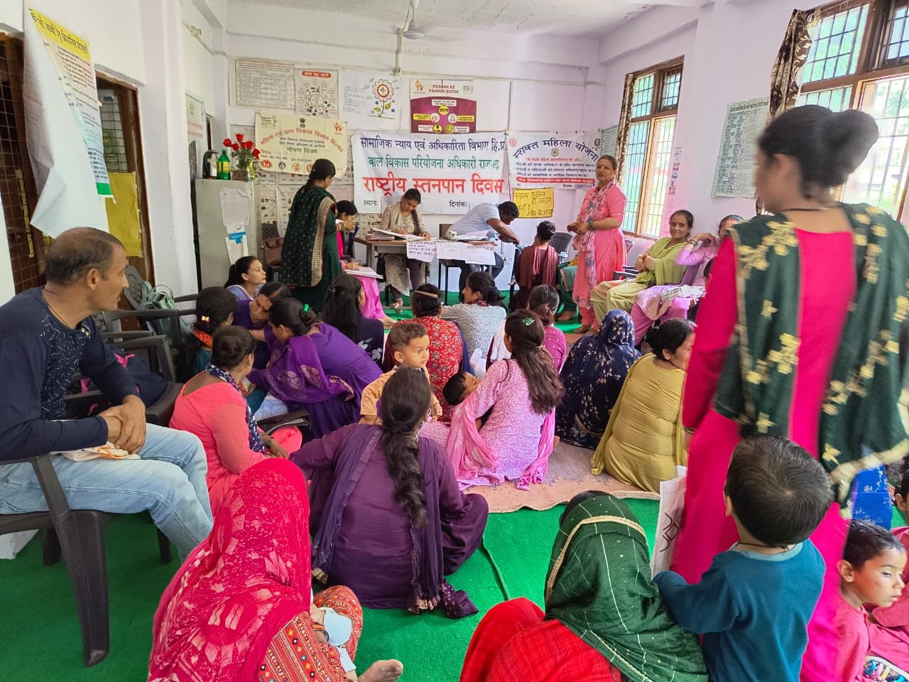 आज वृत्त रेहडी गुसान में विश्व स्तनपान दिवस मनाया गया। जिसमें डाँ विनय, ANM करुणबाला पर्यवेक्षिका प्रोमिला शर्मा ,आंगनवाड़ी कार्यकर्ता ,सहायिका पंचायत सदस्य ,गर्भवती ,धात्री माताओं व बच्चों के भाग लिया। जिन्हें स्तनपान के लाभ,मां का पहला गाढ़ा दूध के बारे में जानकारी दी गई | H.B टेस्ट व कुपोषण को दूर करने के लिए कैम्प का आयोजन भी किया गया तथा महिलाओं को मिशन शक्ति के बारे में अवगत करवाया गया।