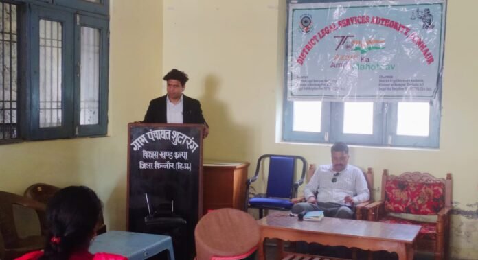 विश्व आदिवासी दिवस के अवसर पर जिला विधिक सेवाएं प्राधिकरण किन्नौर द्वारा जनजातीय जिला किन्नौर के कल्पा विकास खण्ड की ग्राम पंचायत शुदारंग में एक दिवसीय जागरूकता कार्यक्रम का आयोजन किया गया जिसकी अध्यक्षता सचिव, जिला विधिक सेवाएं प्राधिकरण एवं अतिरिक्त मुख्य न्यायिक दण्डाधिकारी किन्नौर जितेंद्र सैनी ने की। इस अवसर पर उन्होंने उपस्थित लोगों को जानकारी देते हुए बताया कि जिला विधिक सेवाएं प्राधिकरण द्वारा अनुसूचित जाति/जनजाति के लोगों को निःशुल्क कानूनी सहायता प्रदान की जाती है ताकि महिला और बच्चे, ओद्यौगिक कामगार, बड़े पैमाने पर आपदा, हिंसा, बाढ़, सूखा, भूकंप व ओद्यौगिक आपदा से पीड़ित, विकलांग व्यक्ति, हिरासत में व्यक्ति, तथा ऐसे लोग जिनकी वार्षिक आय एक लाख रूपये से अधिक नहीं है मुफ्त कानूनी सहायता प्राप्त कर सकें। जितेंद्र सैनी ने बताया कि भारतीय संविधान में अनुसूचित जाति/जनजाति के लोगों को विशेष दर्जा प्राप्त है जिसके तहत निःशुल्क कानूनी सेवाएं प्रदान की जाती हैं। उन्होंने बताया कि यदि किसी व्यक्ति द्वारा अनुसूचित जाति/जनजाति के प्रति किसी भी प्रकार की प्रताड़ना की जाती है तो वह उसके खिलाफ एफआईआर दर्ज कर सकता है तथा उसे मुफ्त वकील उपलब्ध करवाया जाता है। इसके अलावा यदि उस व्यक्ति को जान-माल का नुकसान होता है तो उसे 50 हजार रुपये की राहत राशि भी प्रदान करने का प्रावधान है। इसके अतिरिक्त उन्होंने पोक्सो एक्ट, घरेलू हिंसा अधिनियम, उपभोक्ता संरक्षण अधिनियम, मोटर वाहन अधिनियम और यातायात नियमों के बारे में लोगों को विस्तृत जानकारी प्रदान की तथा जुर्माने के बारे में भी बताया। इस अवसर पर शुदारंग ग्राम पंचायत के प्रधान दलीप नेगी सहित जिला विधिक सेवाएं प्राधिकरण के अन्य अधिकारी एवं कर्मचारी उपस्थित थे।