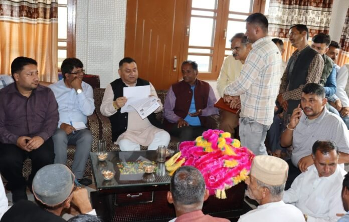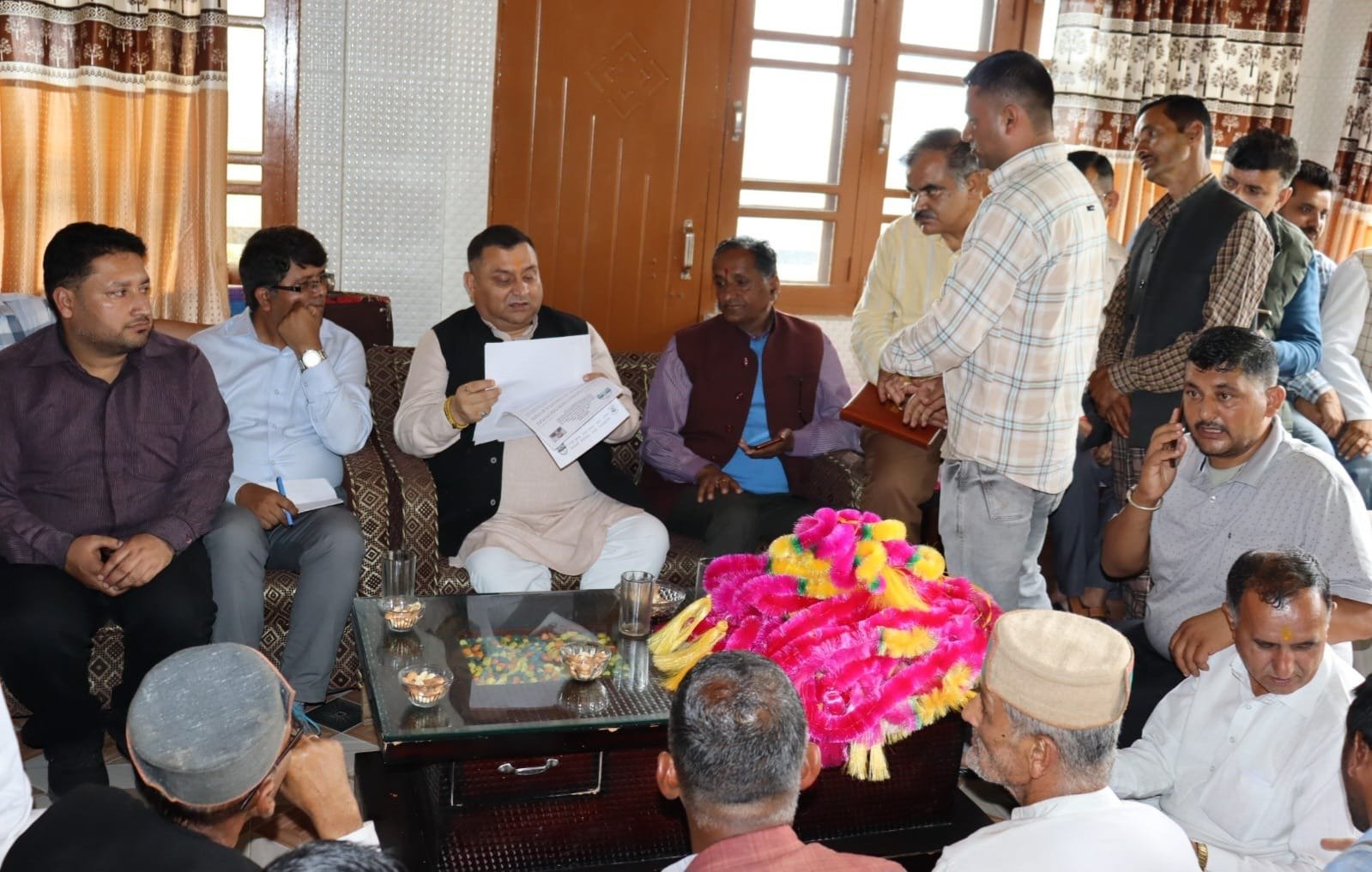 विधान सभा उपाध्यक्ष विनय कुमार ने आज संगड़ाह उपमंडल के गत्ताधार में सांगना, सताहन ,भलाड-भलौना पंचायतों से आए जन प्रतिनिधियों, महिला मंडल, व लोगों की समस्याओं व मांगो को सुना। इस अवसर लोगों द्वारा उपाध्यक्ष के सम्मुख बिजली, पानी, सड़क निर्माण सम्बन्धी समस्याएँ रखी गई। इनमे से अधिकांश समस्याओं का मौके पर निपटारा किया गया तथा शेष समस्याओ व मांगो का शीघ्र समाधान करने के लिए सम्बन्धित विभागों को निर्देश दिए । इस अवसर पर विधान सभा उपाध्यक्ष विनय कुमार ने कहा कि विकास की गति रुकनी नहीं चाहिए| वे इस क्षेत्र के विकास के लिए निरंतर प्रयासरत है। उन्होंने कहा कि सीमित संसाधन होने के बावजूद भी प्रदेश सरकार जनहित कार्य में कोई कमी नहीं आने दे रही है गत वर्ष व हाल ही में आई आपदाओं से हुई क्षति की पूर्ति करने के साथ-साथ विकासात्मक योजनाओं को क्रियान्वित कर आम जनमानस की आर्थिकी को सुदृढ़ बनाया जा रहा है। उन्होनें कहा कि प्राकृतिक खेती को बढ़ावा देने के लिए प्रदेश सरकार द्वारा 150 करोड रुपए की हिम-उन्नति योजना चलाई जा रही है | जिससे प्राकृतिक खेती को बढ़ावा मिलने के साथ-साथ प्रदेश के किसान वर्ग लाभान्वित होंगे। उन्होंने कहा कि प्रदेश सरकार द्वारा प्राकृतिक खेती से उत्पादित गेंहू को 40 रुपये प्रति किलोग्राम और मक्की की फसल को 30 रुपये प्रति किलोग्राम की दर से खरीद की जाएगी । इस योजना से रसायन मुक्त खेती को प्रोत्साहन मिलेगा और कृषि व्यवसाय को भी बढ़ावा मिलेगा। इसके उपरांत विधानसभा उपाध्यक्ष ने मंडवाच में शिरगुल महाराज के मंदिर में पूजा अर्चना की तथा लोगों की समस्याओ को सुना। इस अवसर पर महासचिव युवा कांग्रेस ओमप्रकाश ठाकुर ,जोन अध्यक्ष अनिल शर्मा ,ओबीसी सेल से जगत भारद्वाज ,मीडिया कोऑर्डिनेटर सुरेश शर्मा, व्यापार मंडल प्रधान जेपी शर्मा ,प्रधान सांगना श्रीमती रीना ,पूर्व बीडीसी दिलीप सिंह, एसडीएम संगड़ाह सुनील कायथ,खण्ड विकास अधिकारी चिराग शर्मा, एक्सईएन पीडब्ल्यूडी राकेश खंडूजा ,एक्सईएन जल शक्ति अजय वर्मा, सहित विभिन्न विभागों के अधिकारी व विभिन्न महिला मंडल भी मौजूद रहे।