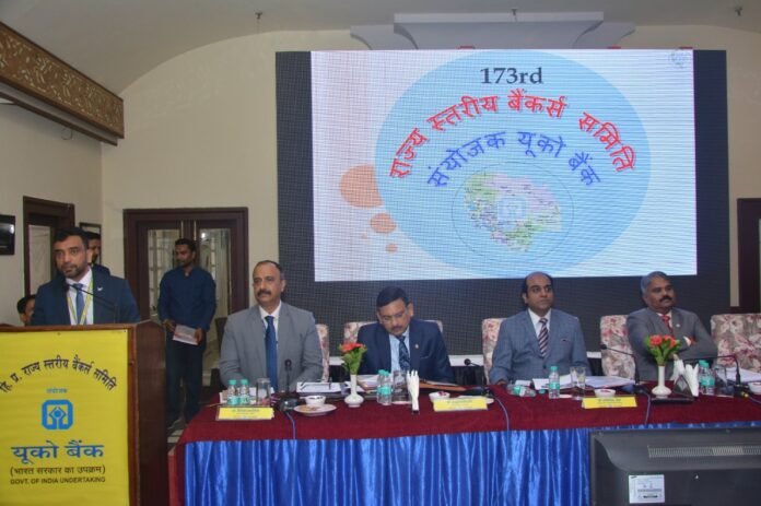 राज्य स्तरीय बैंकर्स समिति हिमाचल प्रदेश की 173वी बैठक(जून 2024 तिमाही) होटल वुडवीले पैलेस में आयोजित की गई, जिसकी अध्यक्षता अभिषेक जैन सचिव वित्त हिमाचल प्रदेश सरकार एवं सह अध्यक्षता यूको बैंक के कार्यपालक निदेशक विजयकुमार निवृत्ति कांबले द्वारा की गई | कार्यपालक निदेशक विजयकुमार निवृत्ति कांबले ने बैंकों की की ACP लक्ष्य का 30% प्राप्त करने पर सराहना की। उन्होंने यह भी कहा: “राज्य के बैंकों ने RBI द्वारा निर्धारित राष्ट्रीय मानकों की तुलना में अपने प्रदर्शन में सुधार किया है।