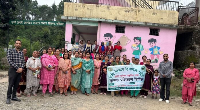 निशेष शर्मा संवाददाता राजगढ़: विकासखंड राजगढ़ के अंतर्गत आने वाली सेर जगास पंचायत के पबियाना में एक दिवसीय किसान प्रशिक्षण का आयोजन किया गया । जिसमे लगभग 150 किसानो ने भाग लिया । इस एक दिवसीय कार्यक्रम में विशेष रूप से डॉ॰ यशवंत सिंह परमार औद्यानिकी एवं वानिकी विश्वविद्यालय नौनी सोलन के किट विज्ञान विभाग से डॉ॰ दीपिकी शर्मा ,बीज विज्ञान विभाग डॉ॰ प्रियंका ठाकुर व सब्जी विज्ञान विभाग से डॉ॰ रीना शर्मा ने किसानो को प्राकृतिक खेती की विस्तृत जानकारी दी और कृषि विभाग के आत्मा अधिकारियों द्वारा भी इस प्रशिक्षण में किसानो को प्राकृतिक खेती की पूरी जानकारी विस्तार पूर्वक दी गई और प्रदर्शन के रूप में किसानो को जीवामृत , घनजीवामृत, अग्निअस्त्र , खट्टी लस्सी को तेयार करने की विधि भी बताई तथा साथ में किसानो को इसके फ़ायदे भी बताए जा रहे है खंड तकनीकी प्रबंधक संजय नायक ने बताया की अगर किसान इस विधि से प्राकृतिक खेती करते है तो इससे किसानो को अधिक लाभ मिलेगा क्यूँकि अगर किसान रसायनिक खेती करते है तो किसान खेती का लाभ नही ले पाते और अधिक रसायनो के प्रयोग से किसान कर्ज में डूब जाते है और शरीर का भी नुक़सान होता है संजय नायक ने ये भी बताया की रसायनिक खेती से बीमारियों का भी अधिक ख़तरा है इससे कैंसर जैसी भयंकर बीमारियों का भी खरता रहता है अगर किसान सुभाष पालेकर प्राकृतिक खेती करते है तो किसान इस खेती से ज़हर मुक्त होंगे तथा कर्ज मुक्त होंगे और साथ ही बीमारियों से भी निजात पाएँगे । राजगड़ के किसान प्राकृतिक खेती राज्य बनने के मुख्यमंत्री के इस सपने को पूरा करने के लिए पूरा सहयोग कर रहे है । इस कार्यक्रम में सहायक तकनीकी प्रबंधक सतीस ठाकुर और अरुण कुमार भी उपस्थित रहे । तथा प्राकृतिक खेती की इस मुहिम को विकास खंड राजगड़ में तेज़ी से बड़ाने के लिए जिला सिरमौर आत्मा परियोजना निदेशक डॉ शाहब सिंह द्वारा आत्मा अधिकारियों को पूरा सहयोग दिया जा रहा है