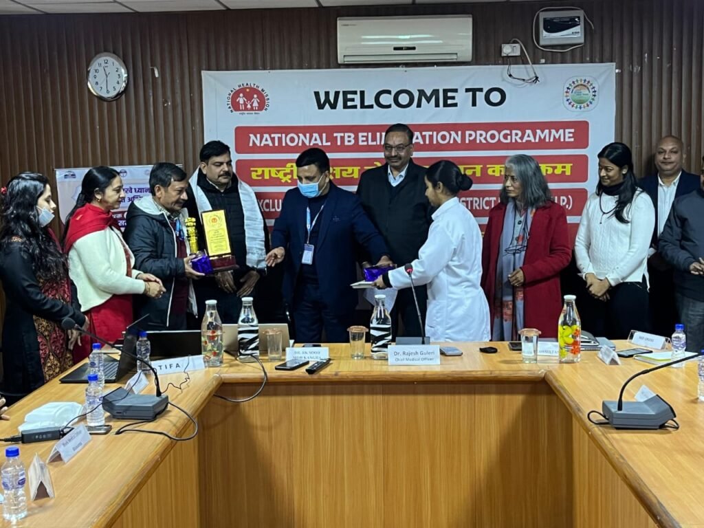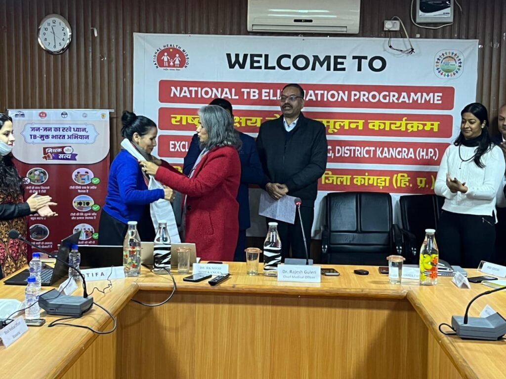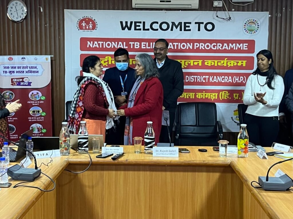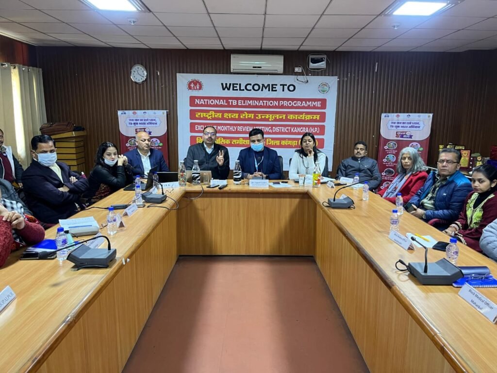 स्वास्थ्य विभाग, जिला कांगड़ा द्वारा 100 दिन की टीबी अभियान की मध्यावधि समीक्षा बैठक का आयोजन किया गया – बैठक की अध्यक्षता मुख्य चिकित्सा अधिकारी डॉ. राजेश गुलेरी ने की। बैठक का संचालन जिला स्वास्थ्य एवं क्षय रोग उन्मूलन अधिकारी, डॉ. राजेश सूद ने किया।बैठक में जिला मेडिकल सुपरिटेंडेंट्, विश्व स्वास्थ्य संगठन टीबी कंसलटेंट्स, वर्ल्ड हेल्थ पार्टनर्स, टी.आई.एफ.ए. प्रतिनिधि, खंड चिकित्सा अधिकारी, जिला आयुष अधिकारी, एसएमओ, और जिला क्षय केंद्र धर्मशाला के कर्मचारी उपस्थित रहे।