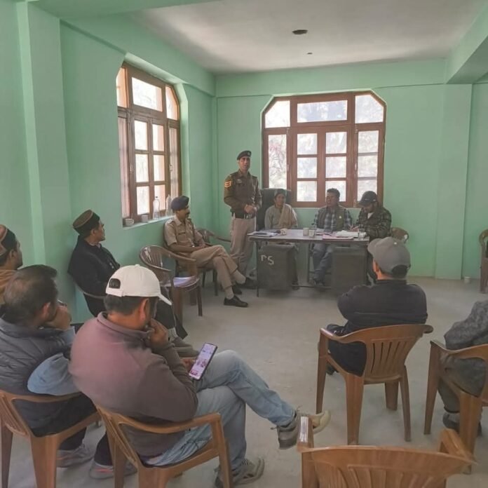 ग्राम पंचायत युवारंगी में “किशो कानून किशो अधिकार” अभियान के अंतर्गत पुलिस थाना रिकांगपिओ के अधिकारियों द्वारा जागरूकता बैठक आयोजित की गई। इस बैठक में ग्राम पंचायत प्रधान, उपप्रधान, सचिव, सदस्यगण एवं स्थानीय नागरिक उपस्थित रहे। बैठक में निम्नलिखित बिंदुओं पर चर्चा की गई | नशा मुक्ति: विशेषकर ‘चिट्टा’ जैसे खतरनाक नशे के दुष्प्रभावों के बारे में जानकारी दी गई तथा ऐसे मामलों की सूचना तुरंत पुलिस को देने की अपील की गई। बच्चों पर विशेष निगरानी रखने की सलाह दी गई। बाहरी श्रमिकों का पंजीकरण: क्षेत्र में बाहरी राज्यों से आने वाले श्रमिकों के थाने में पंजीकरण की अनिवार्यता पर बल दिया गया। पहलगांव जैसी घटनाओं की पुनरावृत्ति रोकने हेतु सतर्कता बरतने को कहा गया। साथ ही कश्मीरी नागरिकों से सम्मानपूर्वक व्यवहार बनाए रखने की हिदायत दी गई। साइबर अपराध: साइबर क्राइम व फ्रॉड से बचने के उपायों की जानकारी दी गई। यातायात नियम: ट्रैफिक नियमों की जानकारी देकर उनका पालन सुनिश्चित करने का अनुरोध किया गया। बाल विवाह: बाल विवाह की कानूनी एवं स्वास्थ्य संबंधी हानियों के बारे में बताया गया तथा इसे न करवाने की अपील की गई।