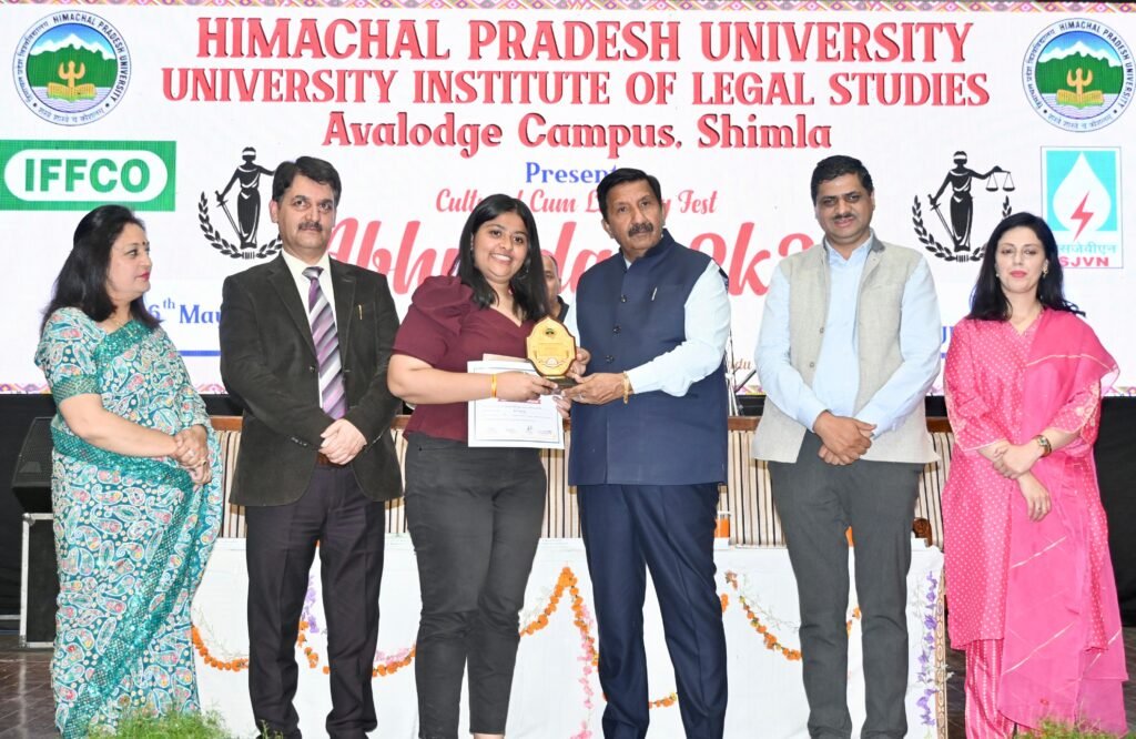 उप मुख्यमंत्री हिमाचल प्रदेश मुकेश अग्निहोत्री ने आज हिमाचल प्रदेश विश्वविद्यालय सभागार में विवि विधिक अध्ययन संस्थान (यूआईएलएस) एवालॉज द्वारा आयोजित दो दिवसीय सांस्कृतिक एवं साहित्यिक उत्सव “अभ्युदय 2025” के समापन समारोह में बतौर मुख्यातिथि शिरकत की। उन्होंने अपने संबोधन में कहा कि यूआईएलएस एक ऐसा संस्थान है जहां से हमारे भविष्य के अधिवक्ता, न्यायिक अधिकारी, प्रशासनिक अधिकारी एवं राजनेता निकलेंगे। उन्होंने कहा कि हिमाचल प्रदेश विधानसभा में लगभग 12 से 14 विधायक इसी विश्वविद्यालय से निकले हैं। इस संस्थान से निकले छात्र आज हर क्षेत्र में सेवाएं प्रदान कर रहे हैं जो सभी के लिए गर्व का विषय है। उन्होंने कहा कि यहां के अध्यापकों की देश तथा प्रदेश में अपनी अलग पहचान है। उन्होंने विद्यार्थियों से सभी अध्यापकों का सम्मान एवं कड़ी मेहनत कर इस देश तथा प्रदेश को आगे ले जाने का आग्रह किया। उन्होंने कहा कि इस विश्वविद्यालय से हमारा गहरा संबंध रहा है। हमारी धर्मपत्नी स्वर्गीय प्रो सिम्मी अग्निहोत्री ने लगभग 28 वर्ष तक इस विश्वविद्यालय में सेवाएं दी है और अब बेटी डॉ आस्था अग्निहोत्री इस संस्थान में सेवाएं दे रही है।