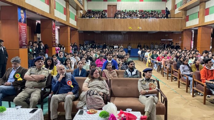 सेंटर ऑफ एक्सीलेंस, राजकीय महाविद्यालय संजौली में आज नशा जागरूकता विषय पर एक विशेष व्याख्यान का आयोजन किया गया। कार्यक्रम में बतौर मुख्य अतिथि एवं वक्ता हिमाचल प्रदेश के पुलिस महानिदेशक (डीजीपी) श्री अशोक तिवारी (आईपीएस) ने कॉलेज के खचाखच भरे ऑडिटोरियम में उपस्थित छात्रों को संबोधित किया और युवाओं को नशे के दुष्प्रभावों से बचने का आह्वान किया। अपने प्रेरणादायी संबोधन में डीजीपी तिवारी ने अपने विद्यार्थी जीवन से अनेकों उदाहरण साझा करते हुए कहा कि नशा केवल विद्यार्थी के जीवन को ही नहीं, बल्कि पूरे परिवार को बर्बादी की ओर ले जाता है। उन्होंने छात्रों को अनुशासन, कैरियर निर्माण और स्वस्थ जीवन के प्रति सजग रहने की प्रेरणा दी। साथ ही उन्होंने विद्यार्थियों से जिम्मेदार नागरिक बनने और पुलिस का सहयोग कर समाज को नशामुक्त बनाने की अपील की। उन्होंने कहा कि प्रत्येक छात्र को “एंटी-चिट्टा वॉलंटियर” बनकर समाज में नशामुक्ति की अलख जगानी चाहिए।