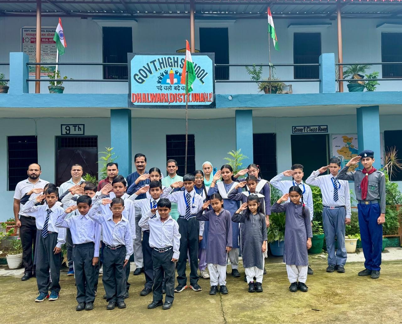 राजकीय उच्च विद्यालय धलवाड़ी में 79वां स्वतंत्रता दिवस बड़े ही उत्साह और देशभक्ति के माहौल में मनाया गया। कार्यक्रम में बीएसएफ जवान राजीव भारद्वाज और सेवानिवृत शास्त्री राकेश शर्मा मुख्य अतिथि के रूप में उपस्थित रहे।कार्यक्रम का शुभारंभ प्रातः 9:30 बजे ध्वजारोहण के साथ हुआ, जिसके बाद विद्यार्थियों द्वारा रंगारंग सांस्कृतिक प्रस्तुतियां दी गईं। देशभक्ति गीत, नृत्य और कविताओं ने उपस्थित सभी लोगों के मन में देश के प्रति गर्व और प्रेम की भावना को और प्रबल कर दिया। इसके साथ ही विद्यार्थियों ने चित्रकला का प्रदर्शन किया, जिसमें स्वतंत्रता संग्राम, राष्ट्रीय प्रतीक और आज़ादी के नायकों के चित्र विशेष आकर्षण का केंद्र बने।एसएमसी प्रधान उच्च विद्यालय विकास भारद्वाज तथा एसएमसी प्रधान प्राथमिक विद्यालय ऋचा शर्मा ने इस आयोजन की सराहना करते हुए कहा कि ऐसे कार्यक्रम बच्चों में देशभक्ति की भावना और सामाजिक जागरूकता को मजबूत करते हैं।विद्यालय के मुख्याध्यापक सुधीर गौतम ने कहा, “स्वतंत्रता केवल हमारा अधिकार नहीं, बल्कि एक जिम्मेदारी है। हमें अपने स्वतंत्रता सेनानियों के बलिदान को हमेशा याद रखना चाहिए और उनके आदर्शों के अनुरूप देश के भविष्य की रूपरेखा तैयार करनी चाहिए।”मुख्य अतिथि बीएसएफ जवान राजीव भारद्वाज ने कहा, “देश की सेवा का अवसर मिलना सबसे बड़ा सौभाग्य है। हमारी आने वाली पीढ़ी को भी देश की रक्षा और सेवा के लिए सदैव तत्पर रहना चाहिए।”सेवानिवृत शास्त्री राकेश शर्मा ने कहा, “आज का दिन हमें एकजुट होकर देश की प्रगति के लिए कार्य करने की प्रेरणा देता है। शिक्षा, अनुशासन और देशभक्ति ही एक मजबूत राष्ट्र की नींव हैं।”कार्यक्रम के अंत में बच्चों को खीर बांटी गई और विद्यालय परिसर में वृक्षारोपण भी किया गया, जिससे पर्यावरण संरक्षण का संदेश दिया गया।