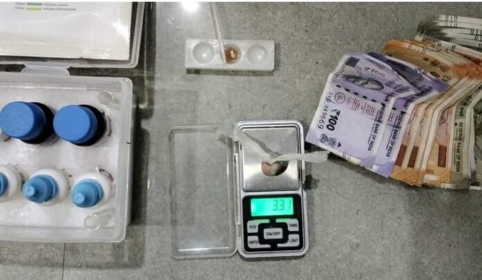 आज सुबह एचटीसी पुलिस के दल ने खुफिया सूचना के आधार पर चंबाके तडोली में स्थित एक निजी होटल से पंजाब के युवक से चिट्ठा व नगदी बरामद की है। जानकारी के अनुसार पुलिस को सूचना मिली थी कि पठानकोट चंबा एनएच 154ए पर चंबा के ताडोली में स्थित होटल गंगाधर में एक युवक नशे की खेप को ठिकाने लगाने में जुटा है। सूचना मिलते ही पुलिस टीम ने त्वरित कार्रवाई करते हुए तड़के सुबह लगभग 5:00 बजे होटल में दबिश् दी। इस दौरान तलाशी करने के बाद युवक के कब्जे से 3.31 ग्राम चिट्टा हेरोइन तथा नशे की बिक्री से अर्जित 7600 नगद रुपए बरामद किए गए,पुलिस ने मौके पर ही आरोपी को गिरफ्तार कर लिया है आरोपी की पहचान अनमोल दीप पुत्र हर चरण सिंह निवासी गांव व डाकघर सलोधिन खत्री यां कलां तहसील अजनाला व जिला अमृतसर पंजाब के रूप में हुई है। पुलिस ने आरोपी को हिरासत में लेकर उसके खिलाफ मादक द्रव्य अधिनियम की विभिन्न धाराओं के तहत सदर थाना चंबा में मोहम्मद दर्ज किया है मामले की पुष्टि करते हुए एसपी चंबा अभिषेक यादव ने कहा है कि नशे का कारोबार करने वालों को किसी भी सूरत में नहीं बक्शा जायेगा। आरोपी से पूछताछ की जा रही है जिसके बाद उसे न्यायालय में पेश किया जाएगा।आज सुबह एचटीसी पुलिस के दल ने खुफिया सूचना के आधार पर चंबाके तडोली में स्थित एक निजी होटल से पंजाब के युवक से चिट्ठा व नगदी बरामद की है। जानकारी के अनुसार पुलिस को सूचना मिली थी कि पठानकोट चंबा एनएच 154ए पर चंबा के ताडोली में स्थित होटल गंगाधर में एक युवक नशे की खेप को ठिकाने लगाने में जुटा है। सूचना मिलते ही पुलिस टीम ने त्वरित कार्रवाई करते हुए तड़के सुबह लगभग 5:00 बजे होटल में दबिश् दी। इस दौरान तलाशी करने के बाद युवक के कब्जे से 3.31 ग्राम चिट्टा हेरोइन तथा नशे की बिक्री से अर्जित 7600 नगद रुपए बरामद किए गए।पुलिस ने मौके पर ही आरोपी को गिरफ्तार कर लिया है आरोपी की पहचान अनमोल दीप पुत्र हर चरण सिंह निवासी गांव व डाकघर सलोधिन खत्री यां कलां तहसील अजनाला व जिला अमृतसर पंजाब के रूप में हुई है। पुलिस ने आरोपी को हिरासत में लेकर उसके खिलाफ मादक द्रव्य अधिनियम की विभिन्न धाराओं के तहत सदर थाना चंबा में मोहम्मद दर्ज किया है मामले की पुष्टि करते हुए एसपी चंबा अभिषेक यादव ने कहा है कि नशे का कारोबार करने वालों को किसी भी सूरत में नहीं बक्शा जायेगा। आरोपी से पूछताछ की जा रही है जिसके बाद उसे न्यायालय में पेश किया जाएगा।