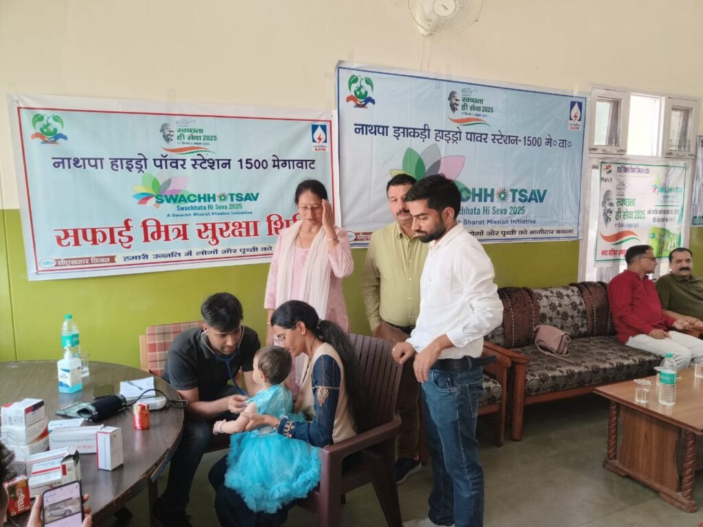 भारत सरकार व निगम मुख्यालय, शिमला के निर्देशानुसार नाथपा झाकड़ी हाइड्रो पॉवर स्टेशन द्वारा 17 सितम्बर से 2 अक्तूबर, 2025 तक स्वच्छता ही सेवा अभियान का आयोजन किया जा रहा है | इसी कड़ी में दिनांक 23.09.2025 को नगर परिषद रामपुर के सफाई कर्मचारियों के लिए नगर परिषद रामपुर, प्राथमिक चिकित्सा केंद्र एवम् आयुष विभाग रामपुर के सहयोग से नि:शुल्क स्वास्थ्य जाँच शिविर आयोजित किया गया। डॉ. आदित्य, पीएचसी, रामपुर, डॉ. ज्योत्सना शर्मा, डॉ. प्रदीप कुमार, आयुष विभाग, रामपुर ने स्वास्थ्य शिविर में सफ़ाई कर्मचारियों के स्वस्थ जांच की और उन्हें दवाइयां भी प्रदान किए गए। कर्मचारियों के अतिरिक्त स्वंय सहायता समूह की महिलाओं की भी स्वास्थ्य जाँच की और दवाइयां भी दी गई | स्वास्थ्य जाँच के साथ नगर परिषद रामपुर के 100 सफाई कर्मचारियों के निशुल्क ब्लड टेस्ट, लिपिड प्रोफ़ाइल, सीबीसी, आरएफटी, एलएफटी, विटामिन डी, बी 12, कैल्शियम, टीएफटी, फीवर प्रोफाइल टेस्ट करवाए गए और उन्हें स्वच्छता किट भी प्रदान की गई। इस स्वास्थ्य शिविर का कुल 110 लोगों ने लाभ उठाया। इस अवसर पर परियोजना प्रमुख, एनजेएचपीएस राजीव कपूर जी ने कहा कि सफाई कर्मचारियों के लिए सफ़ाई मित्र सुरक्षा शिविर का आयोजन करने का मुख्य उद्देश्य सफाई कर्मचारियों के गरिमा को बनाये रखना है । इस अवसर पर कार्यकारी अधिकारी बाबू राम एवं उप महाप्रबंधक (सीएसएआर) कौशल्या देवी भी उपस्थित रहे। इसके अतिरिक्त डैम साईट में भी सफ़ाई अभियान चलाया गया।