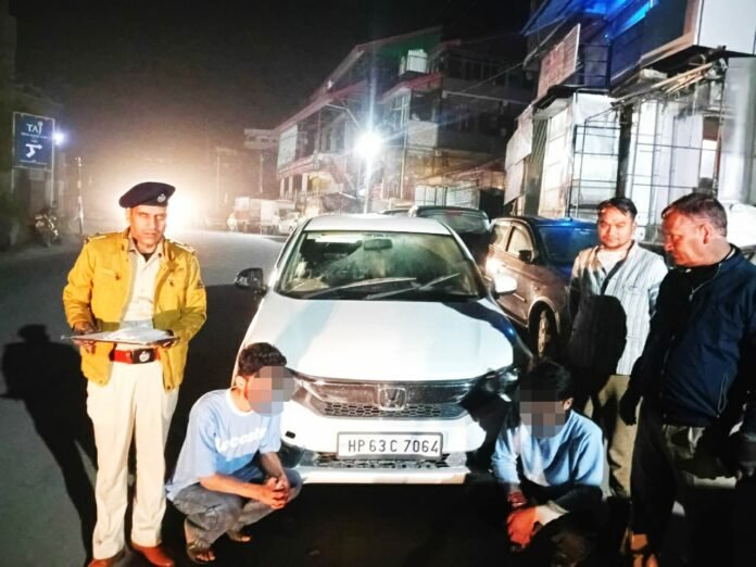 थाना ठियोग एएसआई अश्विनी कुमार, थाना ठियोग की तहरीर पर इस थाने में दिनांक 24/09/2025 को धारा 20, 29 एनडी एंड पीएस अधिनियम के तहत मामला दर्ज किया गया है। डीएसपी ठियोग सिद्दार्थ शर्मा ने जानकारी देते हुए बताया कि ठियोग थाने में सूचना मिली कि जब पुलिस टीम गश्त पर थी, तो प्रेमघाट के पास पहुँचने पर उन्हें विश्वसनीय सूचना मिली कि एक वाहन संख्या HP63C 7064 अमेज रोहड़ू से ठियोग की ओर आ रहा है। यदि इस समय वाहन की तलाशी ली जाए, तो इस वाहन से भारी मात्रा में मादक पदार्थ बरामद हो सकते हैं। इस सूचना पर, वाहन को प्रेमघाट चौक के पास से पकड़ लिया गया। वाहन की तलाशी के दौरान 87.540 ग्राम चरस बरामद की गई। 1. निशांत पुत्र ठाकुर दास, निवासी एलआर कौशल निवास, निचला विकासनगर, तहसील शिमला, जिला शिमला, हिमाचल प्रदेश, उम्र 23 वर्ष। 2. धीरज शर्मा पुत्र धर्म प्रकाश निवासी प्रकाश निवास, जिष्टु निवास के पास, विकासनगर शहरी तहसील एवं जिला शिमला, हिमाचल प्रदेश, उम्र 24 वर्ष। प्राथमिकी दर्ज कर ली गई है और आगे की कार्यवाही जारी है।