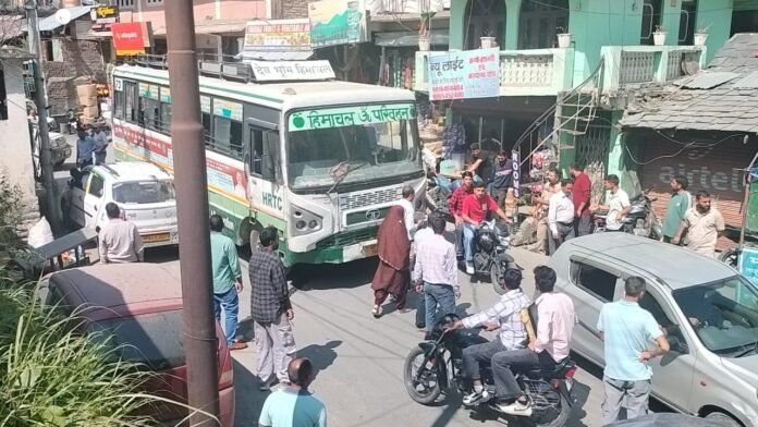 बस स्टैंड के समीप एचआरटीसी की बस खराब होने के चलते 2 घंटे लगा जाम