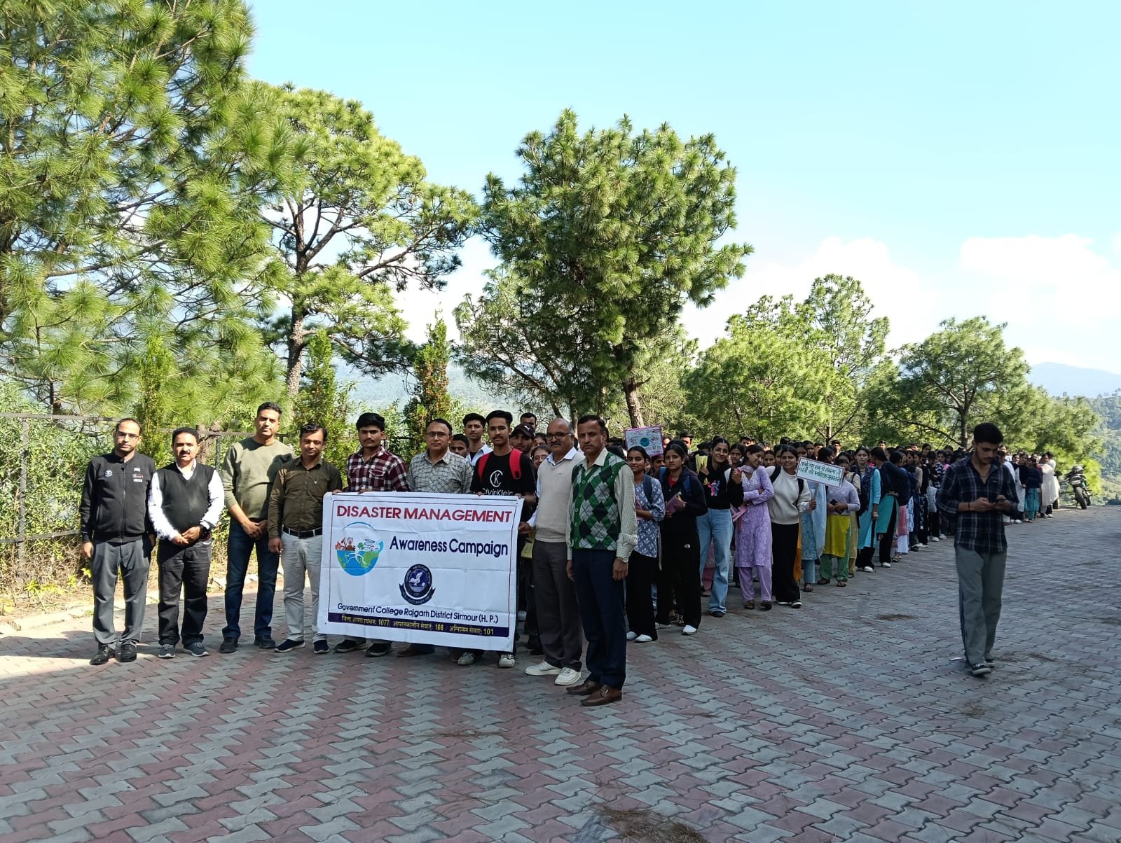 राजकीय महाविद्यालय राजगढ़ में आज आपदा प्रबंधन कमेटी और भूगोल विभाग के संयुक्त तत्वावधान में अंतरराष्ट्रीय आपदा न्यूनीकरण दिवस के उपलक्ष पर एक जागरूकता रैली का आयोजन किया गया। इस रैली में लगभग 250 छात्र-छात्राओं ने उत्साहपूर्वक भाग लिया। रैली महाविद्यालय परिसर से आरंभ होकर कोटली राजगढ़ तक निकाली गई। इस दौरान विद्यार्थियों ने आम जनमानस को आपदा प्रबंधन और सुरक्षा उपायों की जानकारी पंपलेट वितरित कर दी।
