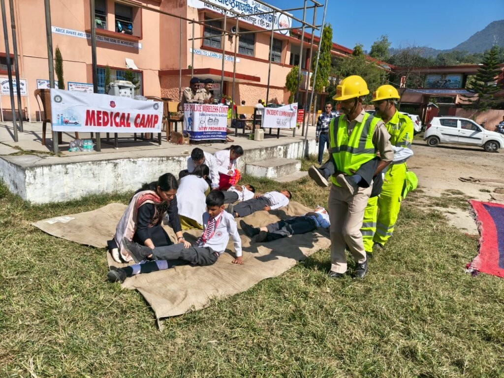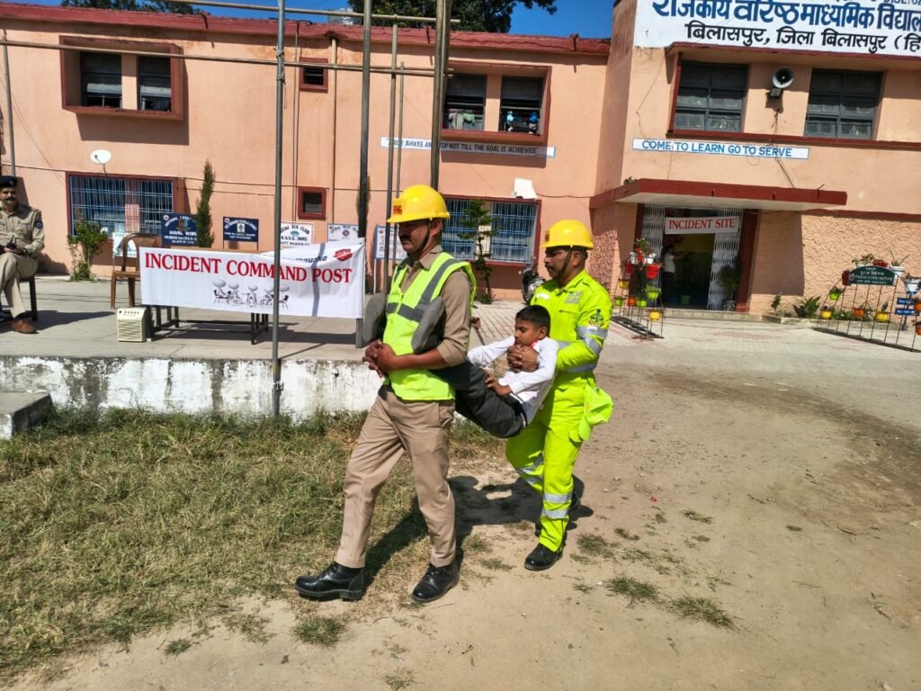 वहीं साइट-2 पर बॉयज स्कूल बिलासपुर में भूकंप के कारण भवन गिरने की स्थिति उत्पन्न होने का अभ्यास किया गया। सूचना प्राप्त होते ही राहत दलों ने तुरंत घटनास्थल की घेराबंदी की और खोज एवं बचाव कार्य शुरू किया। मलबे में दबे 17 छात्रों को सुरक्षित बाहर निकाला गया, जिनमें से कुछ को हल्की चोटें आने पर मौके पर ही प्राथमिक उपचार दिया गया। इस दौरान अतिरिक्त उपायुक्त ओमकांत ठाकुर जिला नियंत्रण कक्ष से राहत एवं बचाव कार्यों की निगरानी कर रहे थे, जबकि एसडीएम सदर राजदीप सिंह ने मौके पर पहुंचकर इंसिडेंट एरिया का निरीक्षण किया और विभिन्न विभागों के अधिकारियों को त्वरित समन्वय से कार्य करने के निर्देश दिए।