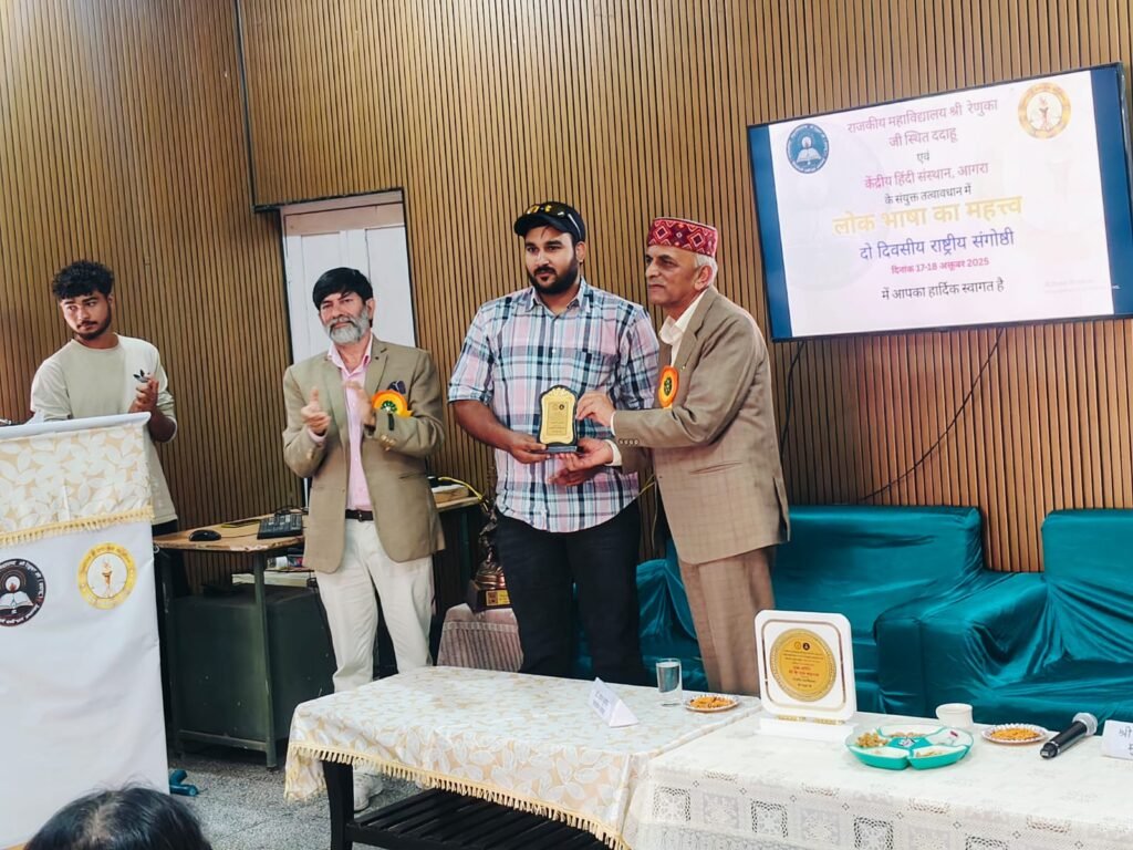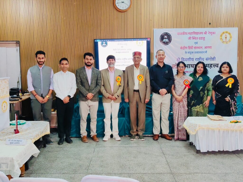 श्री रेणुका जी (सिरमौर)। राजकीय महाविद्यालय श्री रेणुका जी, ददाहू के हिन्दी विभाग द्वारा “लोक भाषा का महत्त्व” विषय पर दो-दिवसीय राष्ट्रीय संगोष्ठी का आयोजन अत्यंत सफलतापूर्वक सम्पन्न हुआ। इस संगोष्ठी में देश के विभिन्न राज्यों — छत्तीसगढ़, गुजरात, हरियाणा, दिल्ली और उत्तर प्रदेश — से प्रतिष्ठित विद्वानों, शोधार्थियों एवं प्राध्यापकों ने भाग लिया और अपने शोधपत्रों के माध्यम से लोक भाषा, लोक संस्कृति तथा साहित्यिक अभिव्यक्ति के विविध आयामों पर गहन विचार-विमर्श किया। इसकी संचालक प्रो नीलम कुमारी तथा आयोजन सचिव डॉ मिल्ला राम रहे.