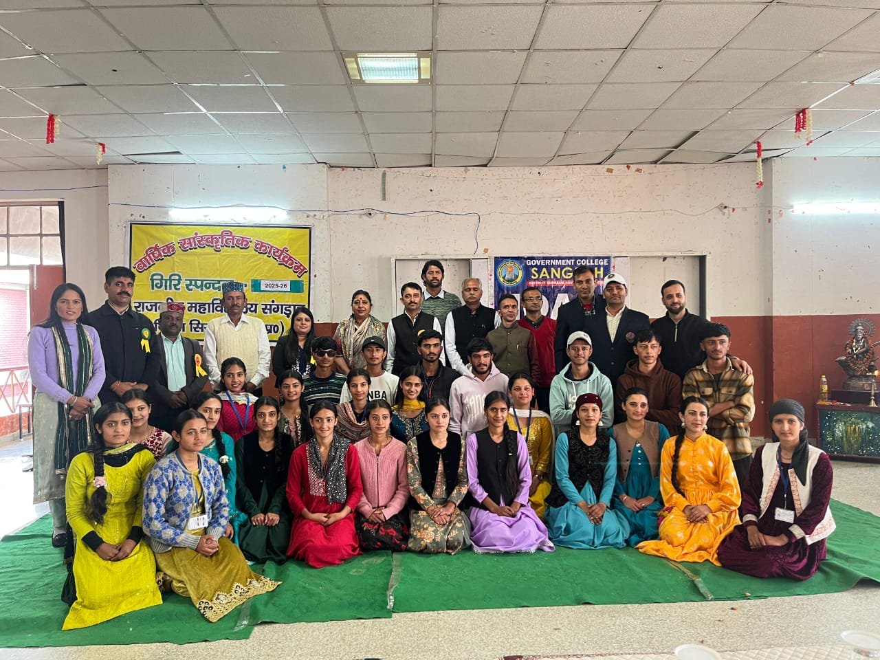 सरकारी महाविद्यालय संगड़ाह के संगीत विभाग (स्वर एवं वाद्य) की गिरि स्पंदन विषयक सोसाइटी द्वारा आज एक भव्य लोक नृत्य प्रतियोगिता का सफल आयोजन किया गया। इस कार्यक्रम के मुख्य आयोजक डा. सरिता एवं डा. विनोद कुमार रहे। कार्यक्रम की अध्यक्षता महाविद्यालय की प्राचार्य डॉ. मीनू भास्कर ने की, जिन्होंने मुख्य अतिथि के रूप में अपनी गरिमामयी उपस्थिति दर्ज कराई।प्रतियोगिता में चार टीमों ने भाग लिया, जिनमें कुल 40 विद्यार्थियों ने अपनी प्रतिभा का प्रदर्शन किया। विद्यार्थियों ने सिरमौर सहित संपूर्ण हिमाचल प्रदेश की लोक संस्कृति को मंच पर जीवंत रूप में प्रस्तुत किया। रंग-बिरंगे पारंपरिक परिधानों, लयबद्ध तालों और लोक वाद्यों की मधुर ध्वनियों ने पूरे सभागार को लोक रंगों से सराबोर कर दिया।इस प्रतियोगिता का मुख्य उद्देश्य विद्यार्थियों में लोक संस्कृति के प्रति जागरूकता बढ़ाना, पारंपरिक कला रूपों का संरक्षण करना तथा आगामी युवा महोत्सव 2025-26 के लिए प्रतिभाशाली विद्यार्थियों का चयन करना रहा। इस प्रतियोगिता में पहला स्थान टीम बी, दूसरा स्थान टीम डी, तीसरा स्थान टीम ए को प्राप्त हुआ कार्यक्रम में प्राचार्य डॉ. मीनू भास्कर ने विद्यार्थियों को संबोधित करते हुए कहा कि —“हमारी लोक संस्कृति हमारी पहचान है। आज के समय में जब आधुनिकता तेज़ी से हमारे जीवन में प्रवेश कर रही है, तब यह आवश्यक है कि हम अपनी जड़ों से जुड़े रहें। हिमाचल की लोक कलाएँ केवल मनोरंजन का साधन नहीं, बल्कि हमारे जीवन मूल्यों, परंपराओं और सामाजिक एकता की प्रतीक हैं। मैं संगीत विभाग के दोनों अध्यापकों तथा सभी विद्यार्थियों को इस सुंदर आयोजन के लिए हृदय से बधाई देती हूँ।”कार्यक्रम के अंत में निर्णायकों ने उत्कृष्ट प्रदर्शन करने वाले प्रतिभागियों का चयन किया। विजेता टीमों को युवा महोत्सव में भाग लेने के लिए अनुशंसित किया गया। कार्यक्रम का समापन राष्ट्रगान के साथ हुआ।यह आयोजन न केवल विद्यार्थियों के लिए एक सांस्कृतिक अनुभव रहा, बल्कि यह महाविद्यालय में लोक संस्कृति के संरक्षण एवं संवर्धन की दिशा में एक सार्थक पहल सिद्ध हुआ।इस अवसर पर डॉ वेदप्रकाश, प्रो देवेंद्र, प्रो संदीप कनिष्क, प्रो अजय, प्रो अम्बरा, प्रो मनोज, प्रो पूनम, प्रो ओम प्रकाश, प्रो कविता, श्री सुभाष जी, श्री राजीव शर्मा, श्री बलवंत, श्री सुरेन्द्र, कुमारी अनीता, श्री राजेंद्र धीमान एवं समस्त विद्यार्थी वर्ग उपस्थित रहा