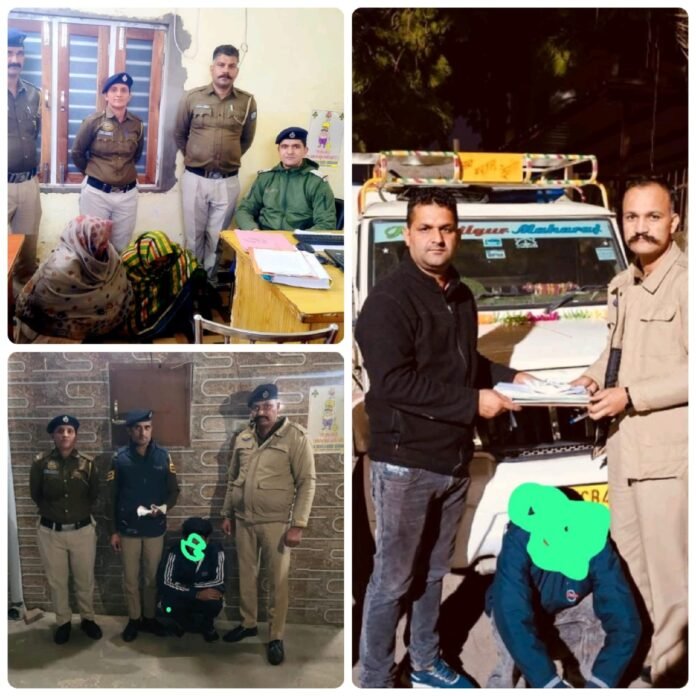 उपमंडल पांवटा साहिब में पुलिस ने नशा तस्करी के खिलाफ एक बड़ी कार्रवाई को अंजाम दिया है। इस दौरान पुलिस टीमों ने अफीम, चिट्टा (स्मैक) और नकदी सहित भारी मात्रा में अवैध सामग्री जब्त की है। यह संयुक्त अभियान स्पेशल डिटेक्शन सेल और थाना माजरा की टीमों द्वारा चलाया गया।मिली जानकारी के अनुसार, थाना माजरा पुलिस ने गांव भगवानपुर में छापेमारी कर शाहरुख पुत्र गुलज़ार, निवासी भगवानपुर, पुरुवाला से 7.24 ग्राम हीरोइन/स्मैक बरामद की। इसी के साथ, दूसरी टीम ने गुप्त सूचना पर सहीदा पत्नी स्वर्गीय यूसुफ और उसकी पुत्री हसीन पत्नी अलीजान, निवासी भगवानपुर के घर पर दबिश दी। तलाशी के दौरान 14.20 ग्राम चिट्टा और ₹8,500 नकद पुलिस ने कब्जे में लिए।वहीं, स्पेशल डिटेक्शन सेल पांवटा साहिब ने कार्रवाई करते हुए रमेश पुत्र खड़कू राम, निवासी कवाणु, तहसील चकराता, जिला देहरादून (उत्तराखंड), उम्र 23 वर्ष, के पास से 58.4 ग्राम अफीम बरामद की। आरोपी को राजकीय कन्या विद्यालय के पास से पकड़ा गया और उसका पिकअप वाहन नं. UK07CB-4851 भी पुलिस ने सीज कर लिया।सभी आरोपियों के खिलाफ संबंधित धाराओं के तहत मामले दर्ज किए गए हैं। पुलिस का कहना है कि आरोपियों को अदालत में पेश कर पुलिस रिमांड लिया जाएगा ताकि इनके नेटवर्क की गहराई से जांच की जा सके। पुलिस प्रशासन ने स्पष्ट किया है कि नशे के खिलाफ चलाए जा रहे अभियान में किसी भी स्तर पर ढिलाई नहीं बरती जाएगी, और भविष्य में भी इस तरह की सख्त कार्रवाइयां लगातार जारी रहेंगी।