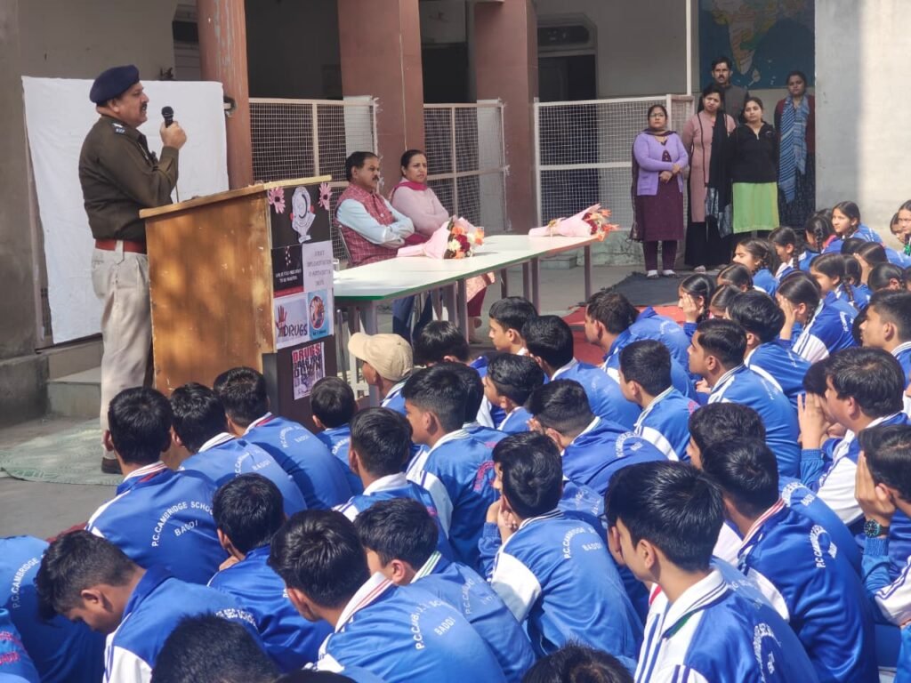 आज दिनांक 22.11.2025 को पुलिस थाना बद्दी की टीम द्वारा पी.सी. कैम्ब्रिज स्कूल बद्दी में छात्र-छात्राओं के लिए मादक पदार्थों के दुरुपयोग, साइबर सुरक्षा एवं यातायात नियमों पर जागरूकता व्याख्यान आयोजित किया गया। कार्यक्रम के दौरान विद्यार्थियों को नशे से होने वाले दुष्प्रभाव, नशे से बचाव के उपाय, साइबर अपराधों से सुरक्षित रहने के तरीकों तथा सड़क सुरक्षा नियमों के महत्व के बारे में विस्तृत जानकारी प्रदान की गई।